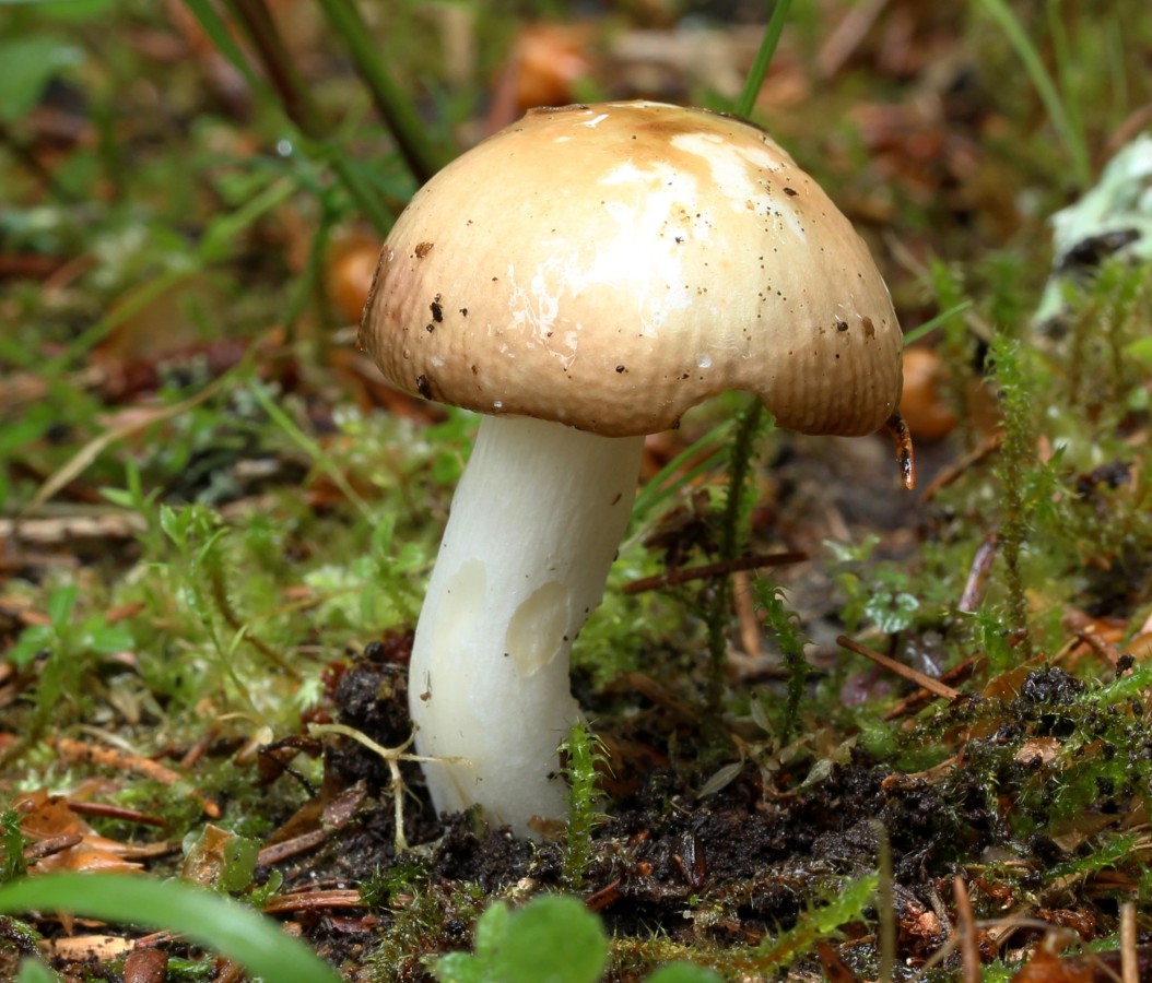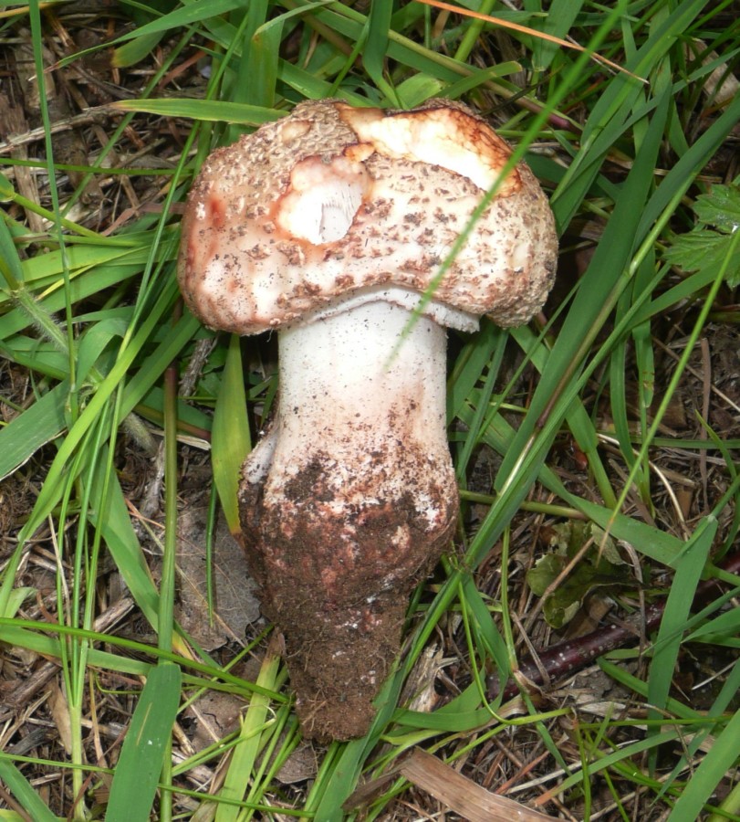 Ich bin dann aber beim Ockergrauen Riesen-Streifling (Amanita lividopallescens) gelandet: