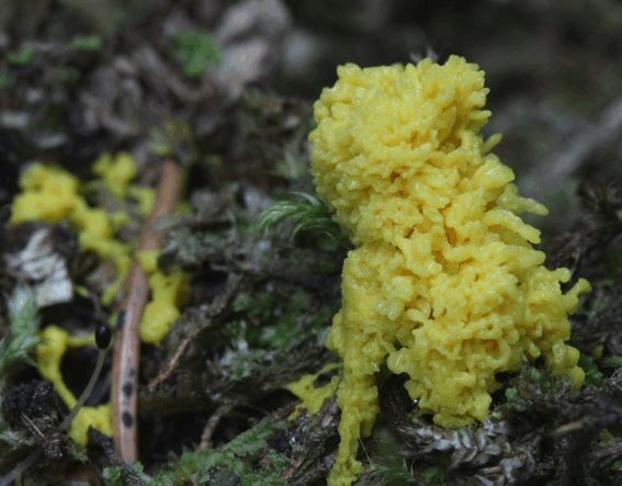 Den Anfang machte der Geweihförmige Schleimpilz (Ceratiomyxa fruticulosa):