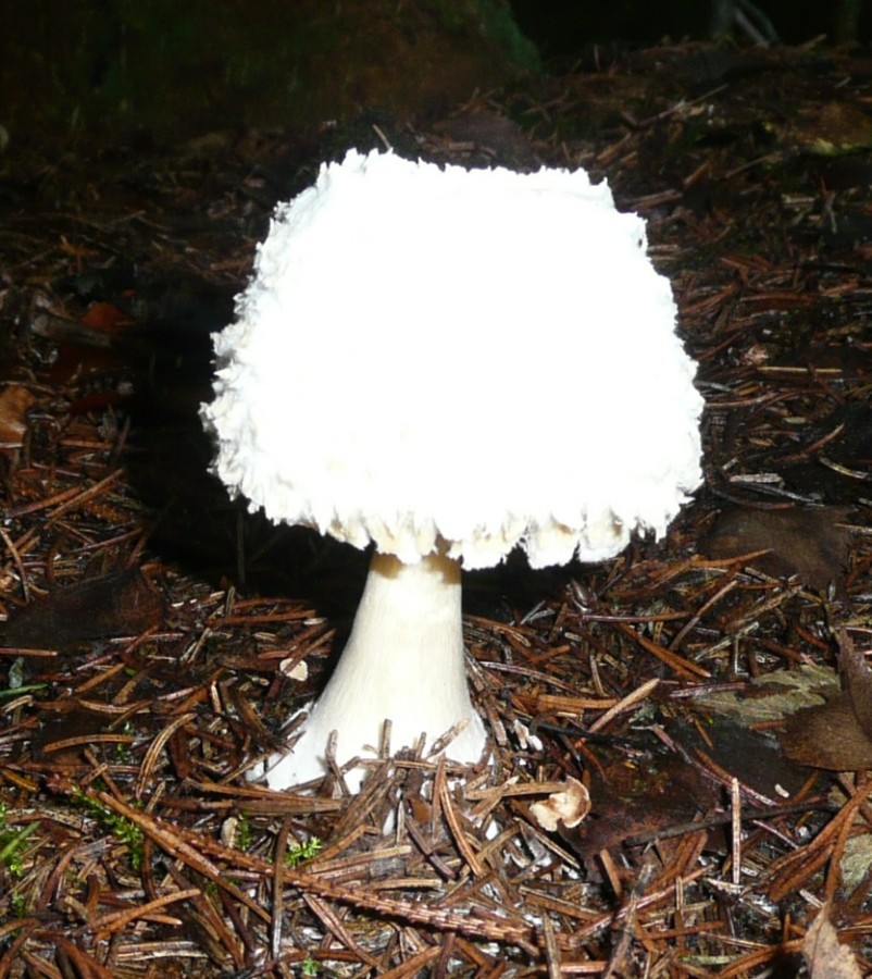 Hut: weiß, mit leich rotbräunlichen Schüppchen, Durchmesser ca. 8 cm