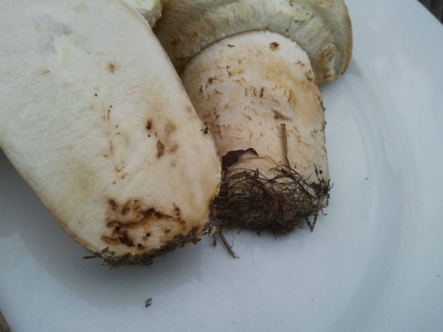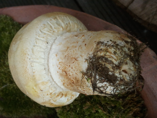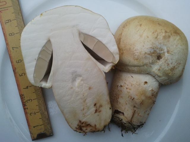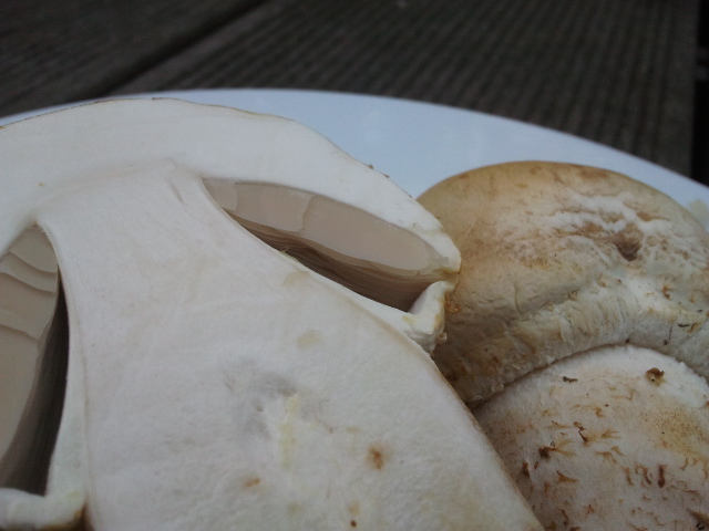Champignon ist sicher auch eine Option. Werde den Pilz jetzt aufgeschnitten fotografieren und mal dran riechen.