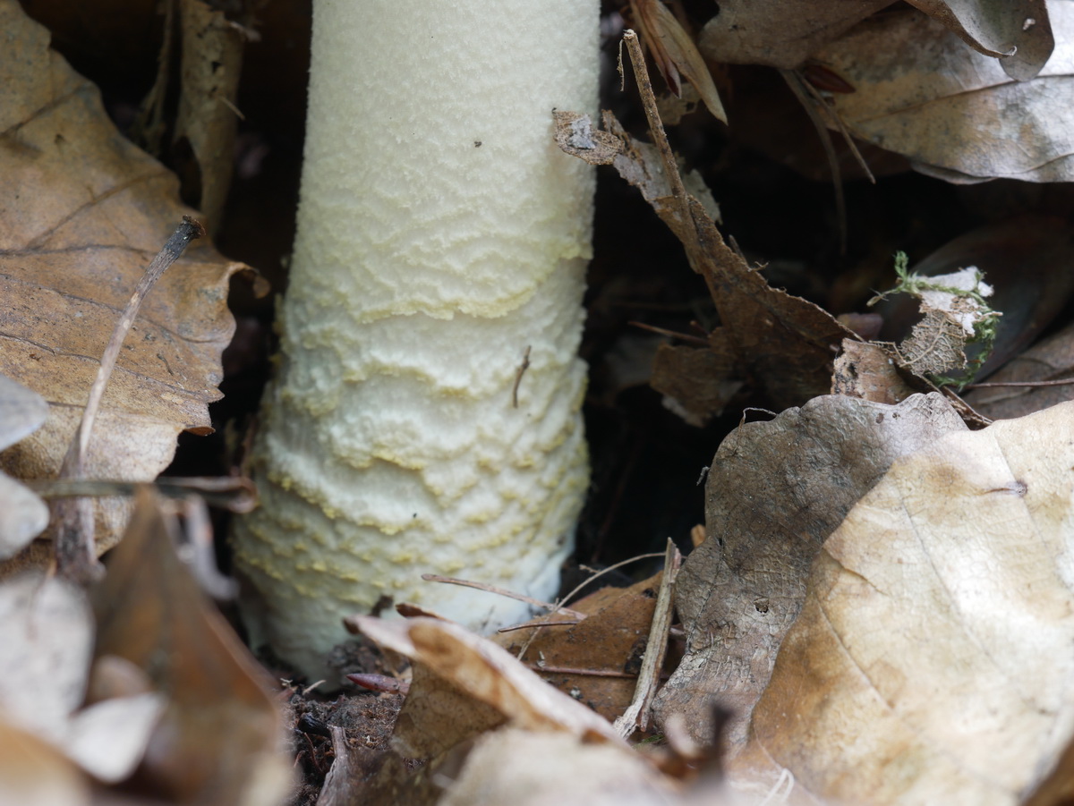 Auch meiner wuchs in der Nähe eines Moors. Bäume im Umfeld: Eiche, Buche, vereinzelte Fichten. Ich hatte diesen Pilz so noch nie gesehen, bei einem Spaziergang mit einer Bekannten entdeckt. Bin am nächsten Tag nochmal zum Fotoshooting raus - Ergebnis siehe weiter oben. Meine Bestimmungsversuche haben mich zum Grauen Scheidenstreifling - Amanita vaginata, var. alba - geführt. Allerdings kann ich dies nicht weiter festigen, dazu fehlen mir die Möglichkeiten. Aber vielleicht hilft dir die Spur in die richtige Richtung.