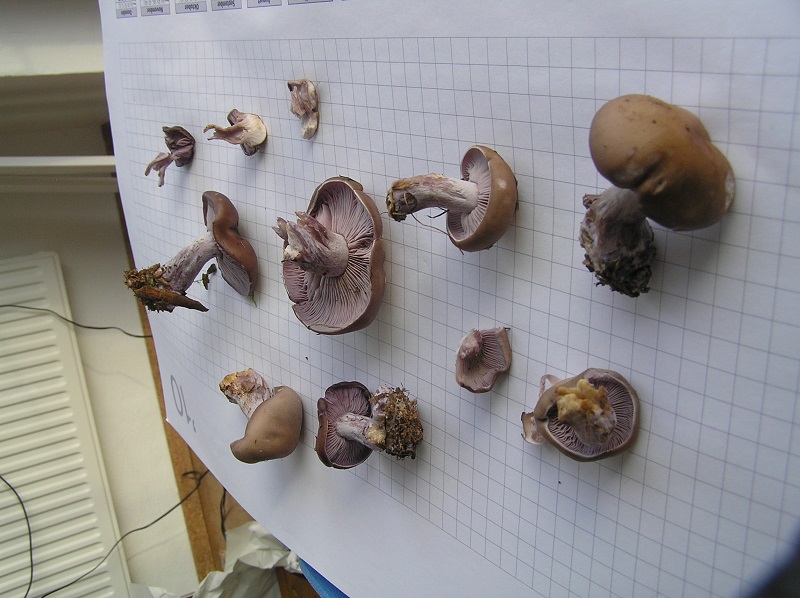 Zum Ausschluß vom Bocksdickfuß und vom Lila Dickfuß war mir wichtig, dass die Pulverfarbe fern ab von braun ist (dürfte somit auch Purpurfleckender Klumpfuß und den Violetter Schleierling ausschließen).