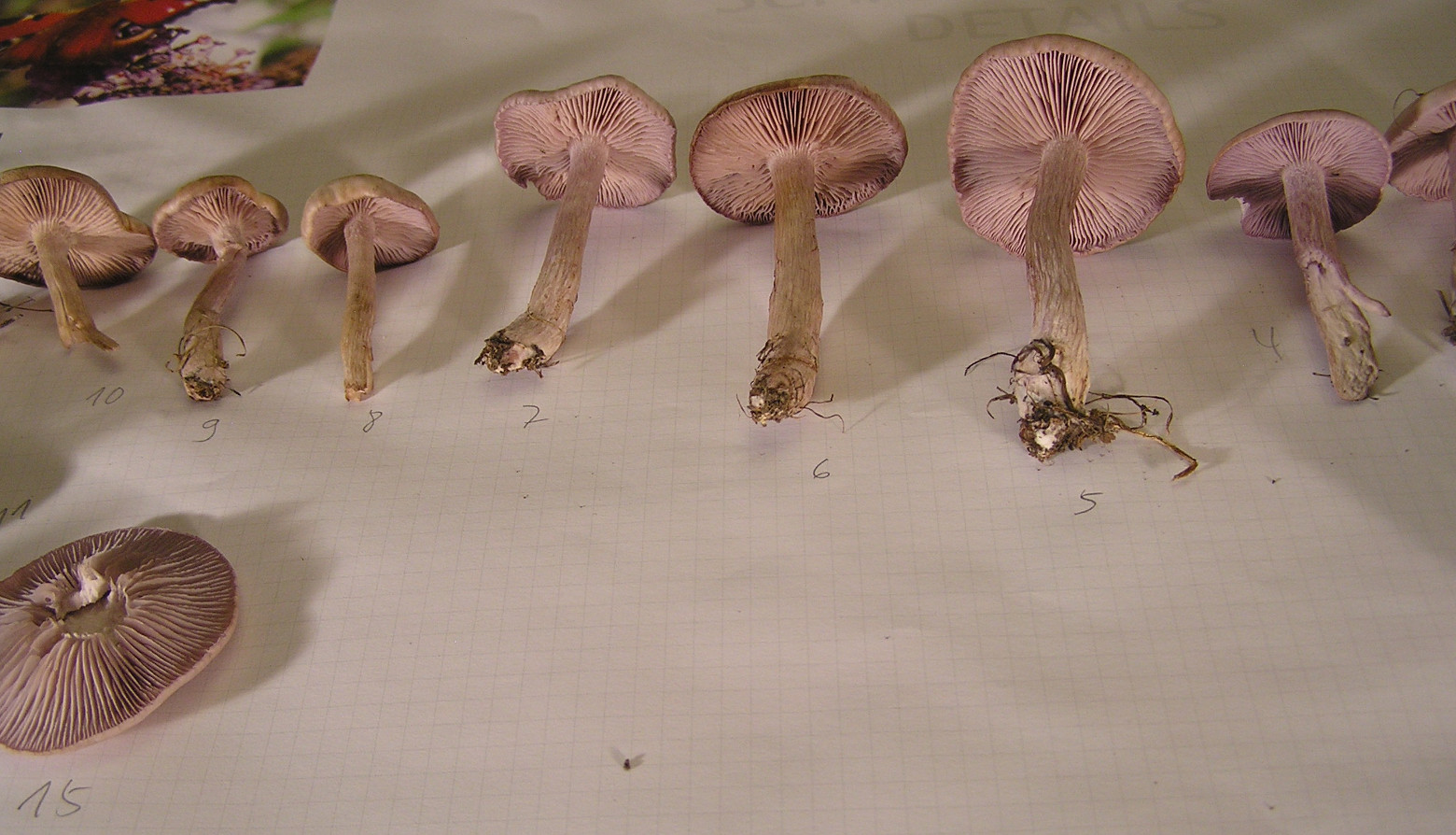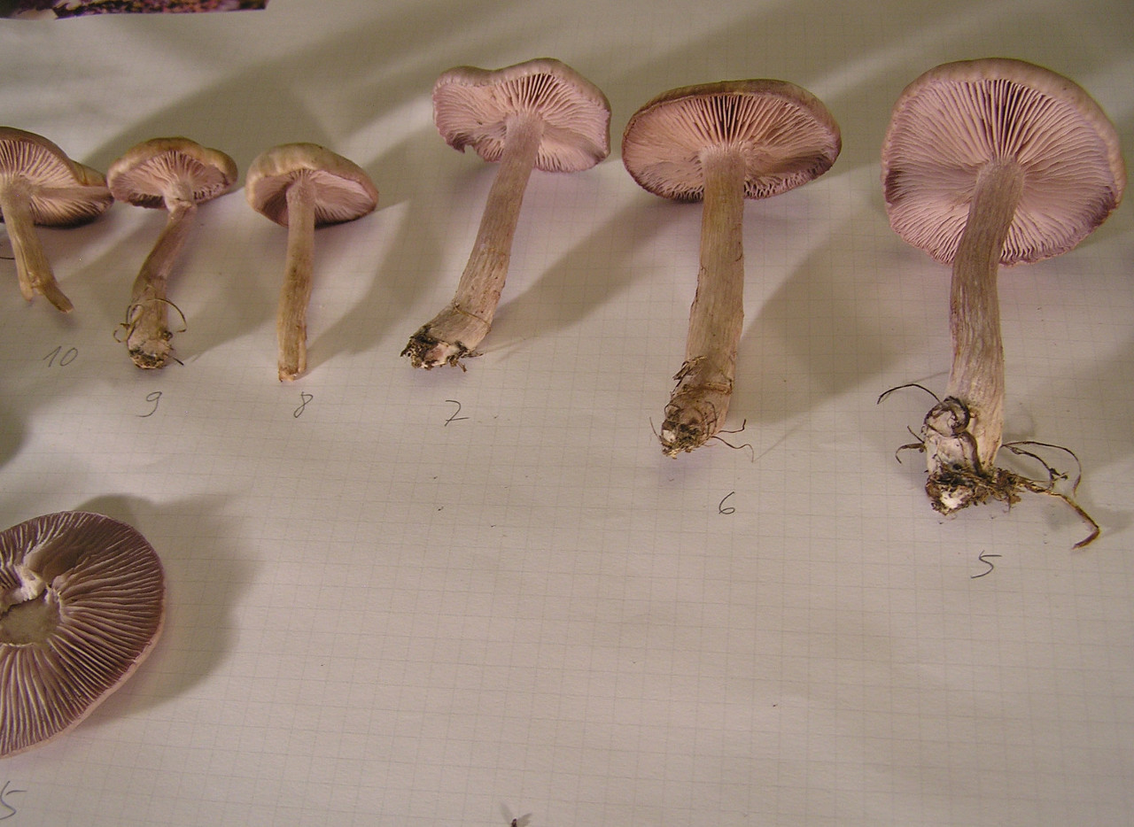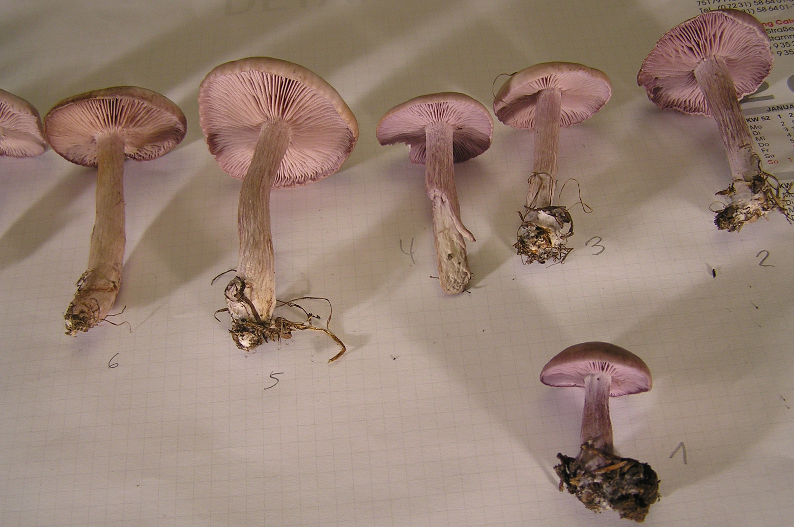 Für einen Laccaria amethystea sind sie diese Fruchtkörper vermutlich zu wuchtig; und ihre Hutfarbe weicht meiner Meinung nach zu weit von Stiel- und Lamellenfarbe ab. Der Hut von Fruchtkörper mit Bleistiftnummer 6 hat sicherlich 6cm Hutdurchmesser.