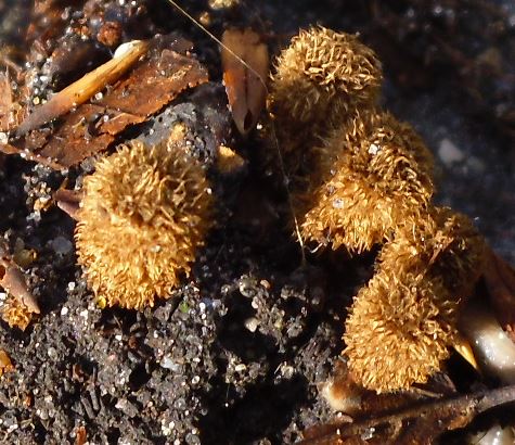 Die Antwort kam schnell. Die Sache mit den linsenförmigen Peridiolen habe ich bei Wikipedia nachgelesen. Interessant welche verschiedenen Verbreitungsstrategien es alleine bei Pilzen gibt. -