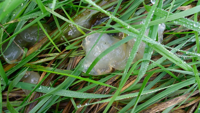 bei diesem Fund bin ich mir nicht sicher ob es sich überhaupt um einen Pilz handelt. Die Aufnahmen sind noch vom Oktober, weitere Einzelheiten kann ich leider nicht mehr nennen. Gefunden habe ich diese Gelee-Kleckse auf einer Wiese in der Nähe von einem Moor, verteilt auf ungefähr einen Quadratmeter.