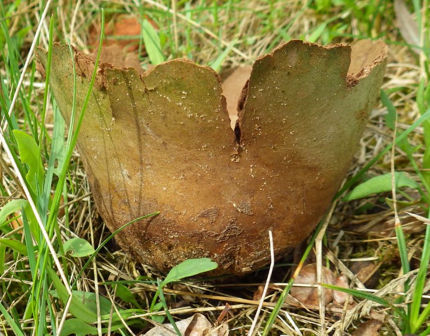 Bovist habe ich schon vermutet, weil es keinen Stiel gab. Ich bin aber nicht darauf gekommen, dass es ein geöffneter Körper vom letzten Jahr sein könnte. -