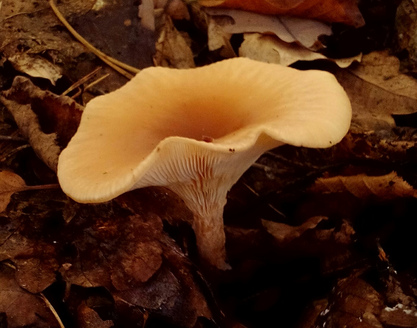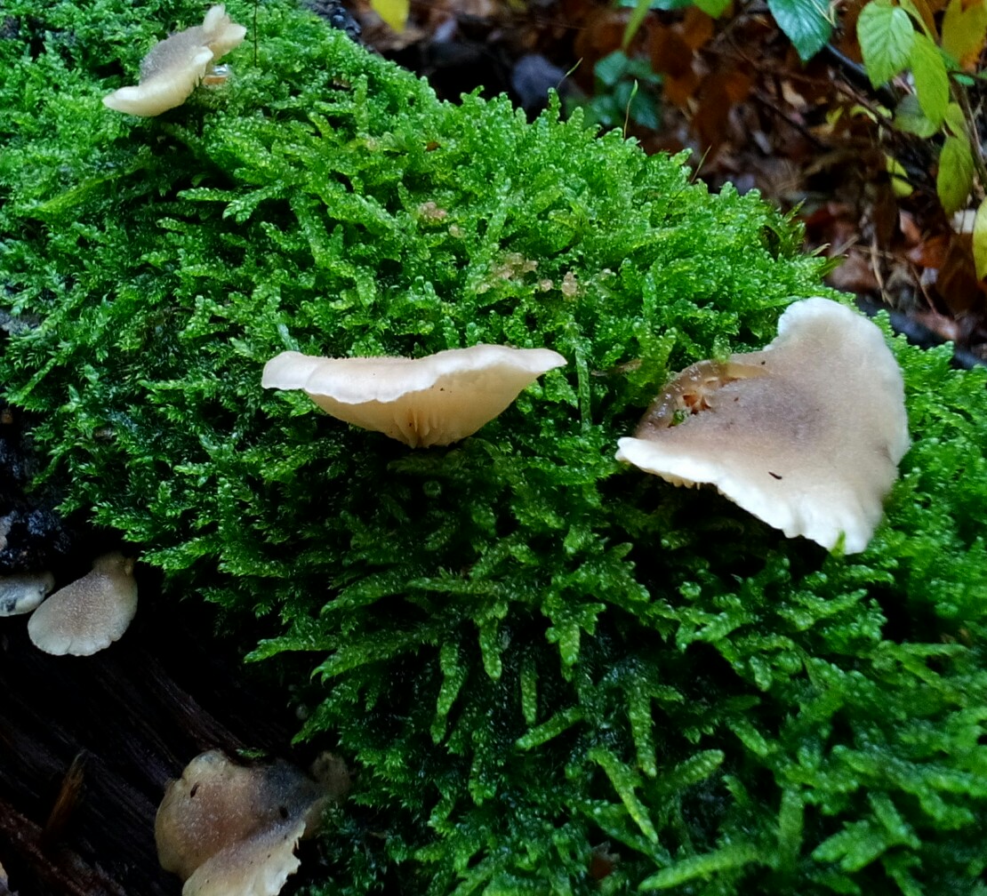 bei meinem heutigen Waldspaziergang auf den Fildern, in einem Mischwald aus Birken, Eichen, Buchen und einigen Kiefern sah ich auch noch diesen fleischfarbigen Pilz: