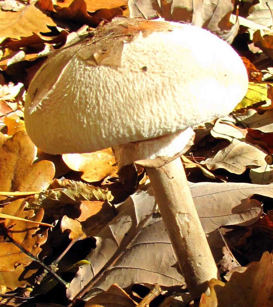Der zuvor weiße, flaumige Stiel verfärbt sich nun mausgrau und der Flaum ist nicht mehr so deutlich sichtbar.