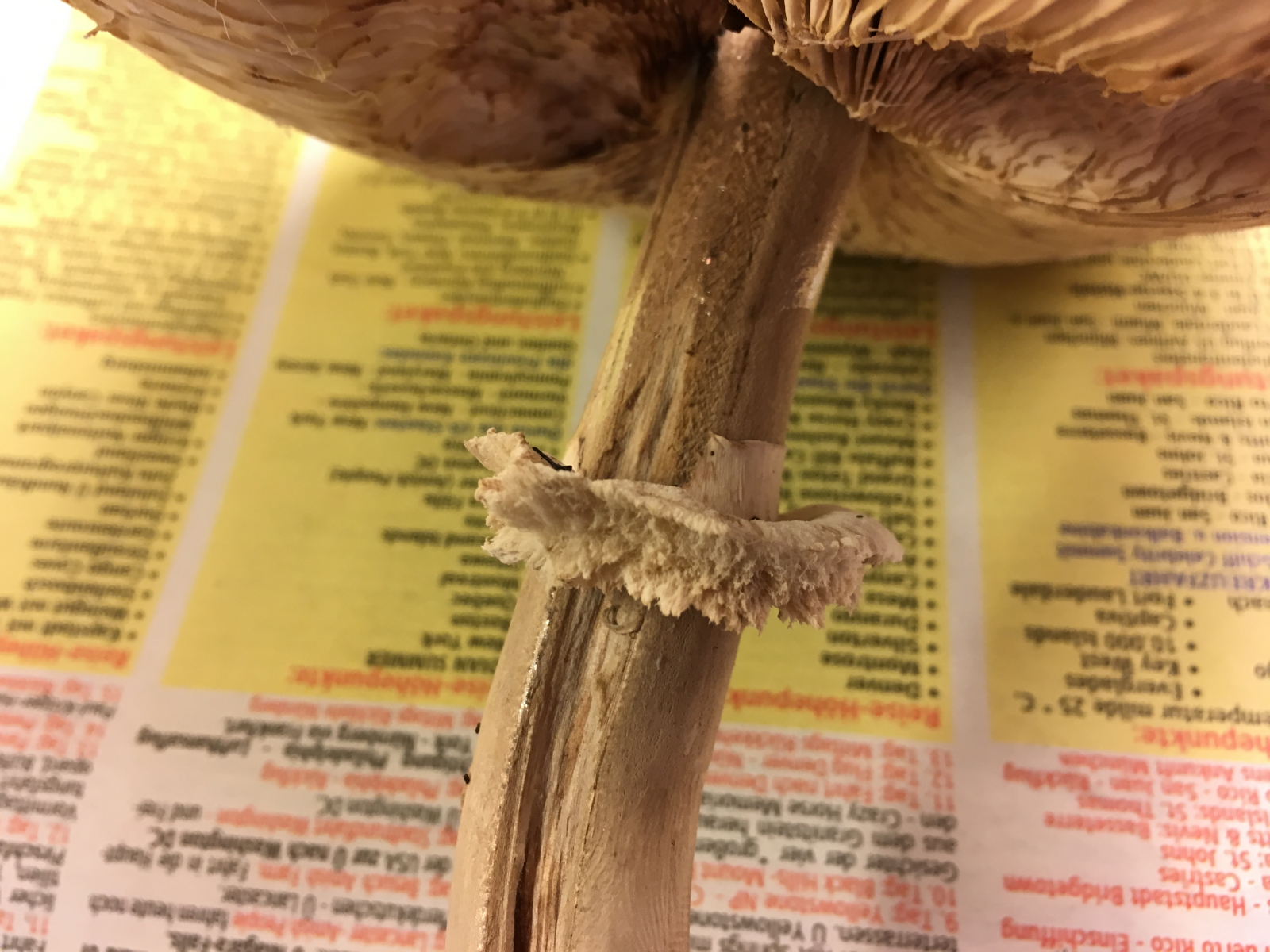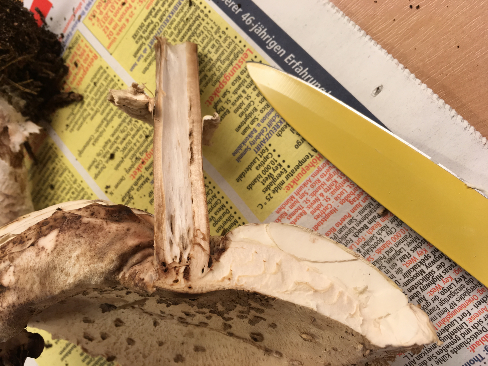 Es zeigt sich aber auch keine Rötung beim Schneiden des Stiels, was M. rachodes ausschließt.Hier noch einige Fakten: