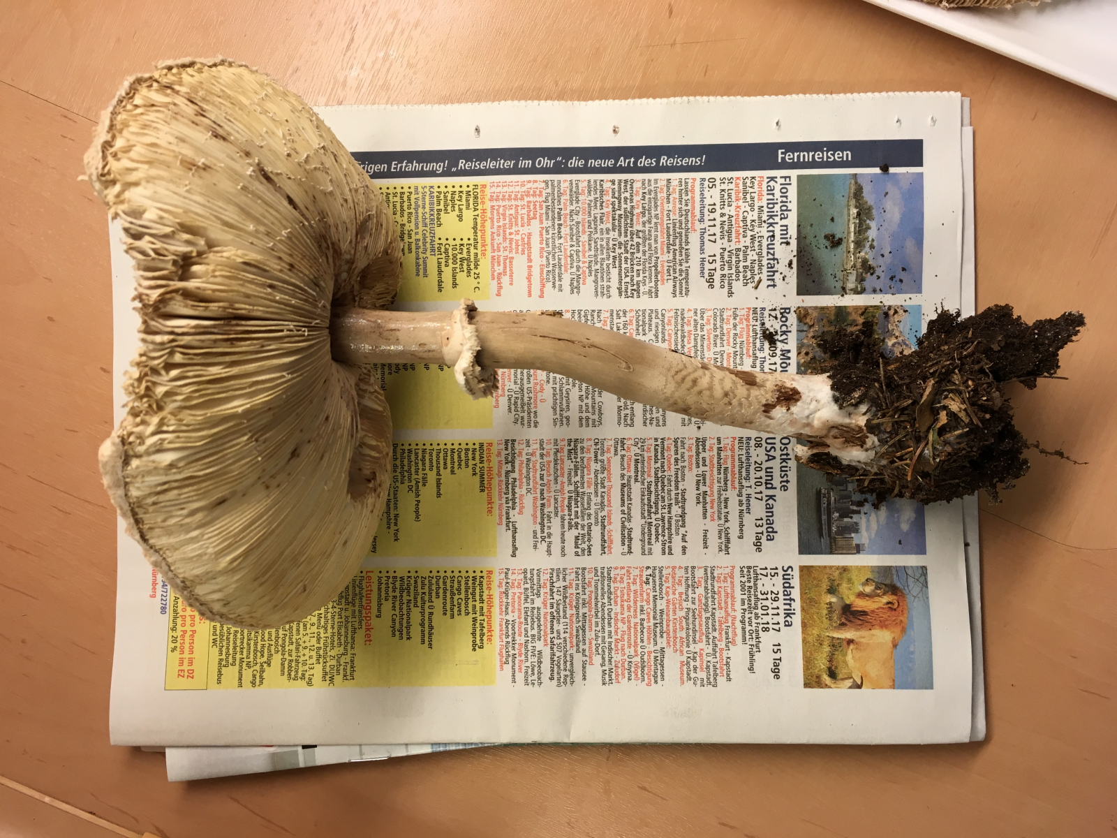 Es spricht einiges für M. procera, aber der Stiel ist - bei den von uns gefunden Exemplaren - für diese Art zu hell.