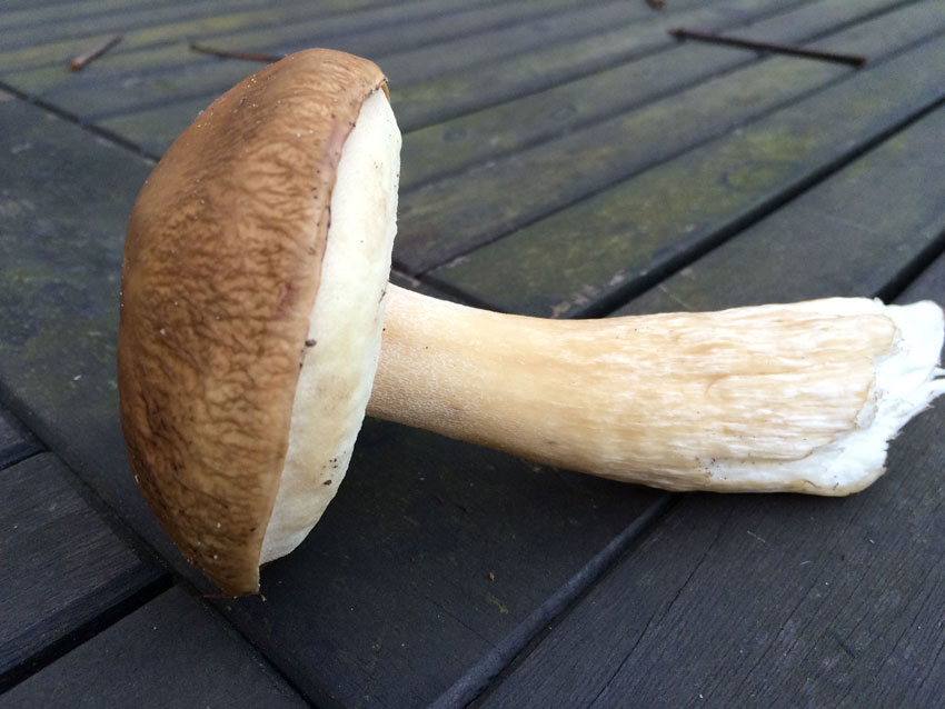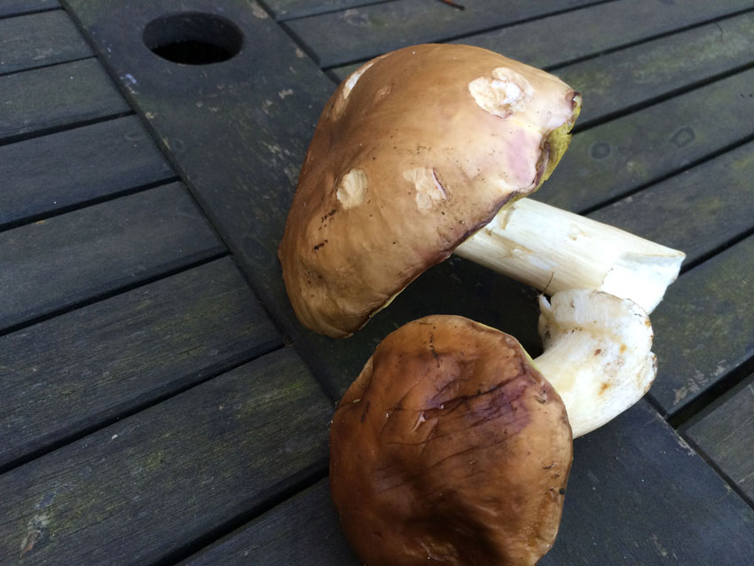 Was hier sonst als Steinpilz wächst, sind eher Bilderbuchpilze. Manchmal auch Sommersteinpilze, die ähneln den jetzigen..