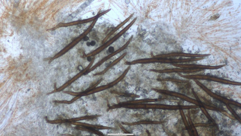 Ich hab' nochmal einen anderen (reiferen?) Fruchtkörper angesehen, und in Wasser statt BWB mikroskopiert.