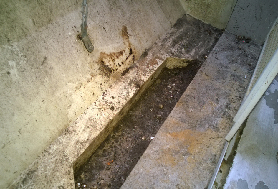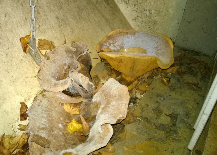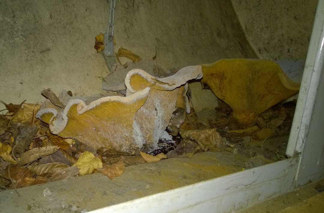 Wir haben die Pilze (oder was wir davon gesehen haben) entfernt und den Lichtschacht einigermaßen gesäubert.