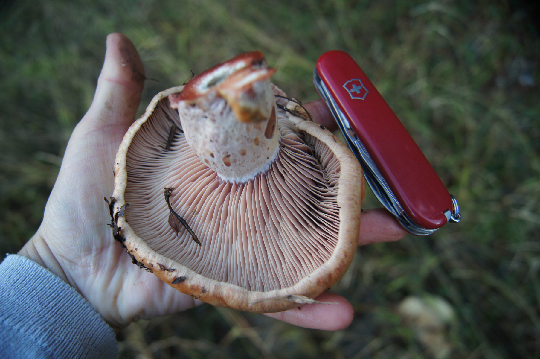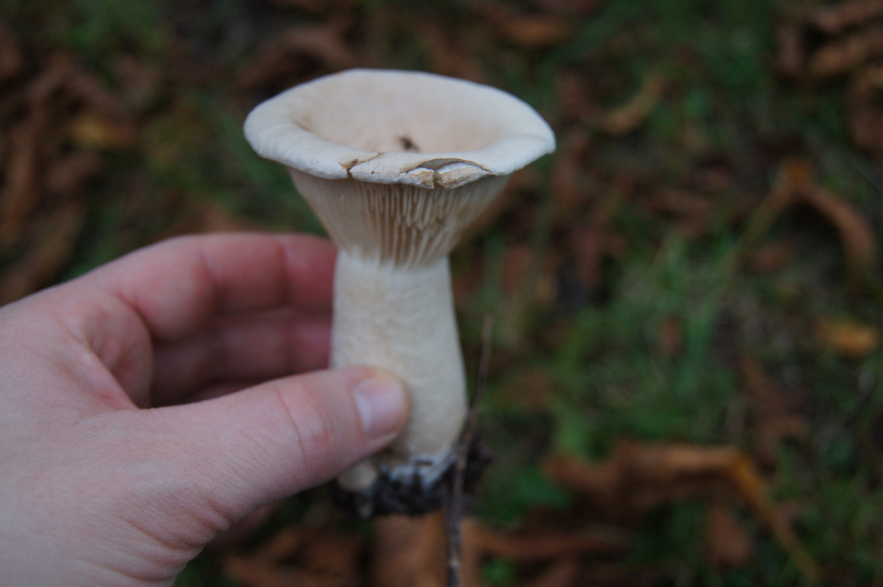 Eigentlich habe ich sofort an Mönchsköpfe gedacht (die blassrosa-beige Farbe, der dicke Stiel, der eingerollte Hutrand und der Buckel würden passen), aber dafür sind sie laut 123pilze.de und anderer Pilzseiten zu klein. Das kleinste Exemplar hat einen Hutdurchmesser von gerade mal 2 Zentimetern, das größte einen von 6 Zentimetern. Hat jemand schonmal so kleine Mönchsköpfe gefunden?