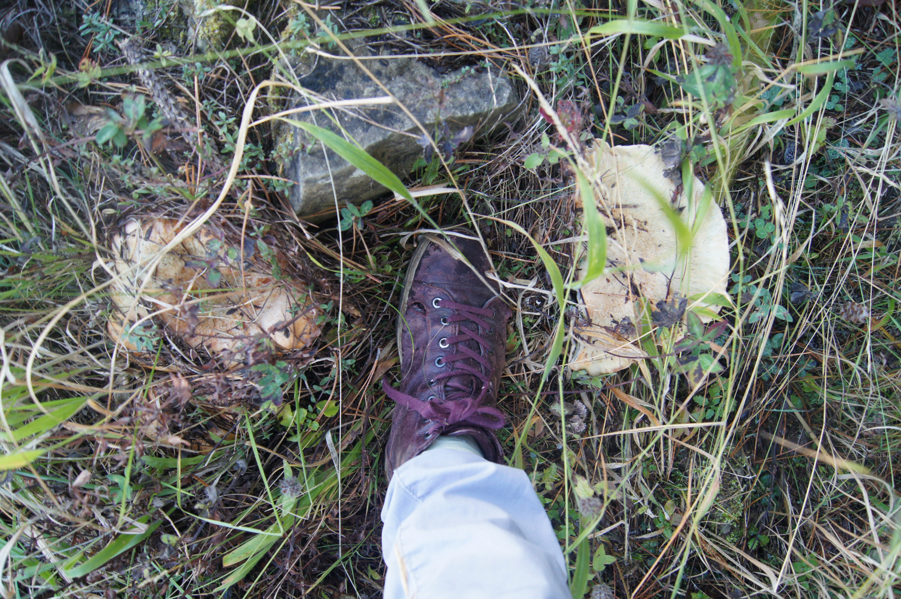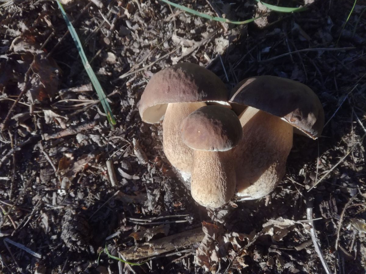 Kommt auf dem Foto nicht so gut raus, aber es ist dunkler als ich es je bei Steinpilzen bisher gesehen habe... -