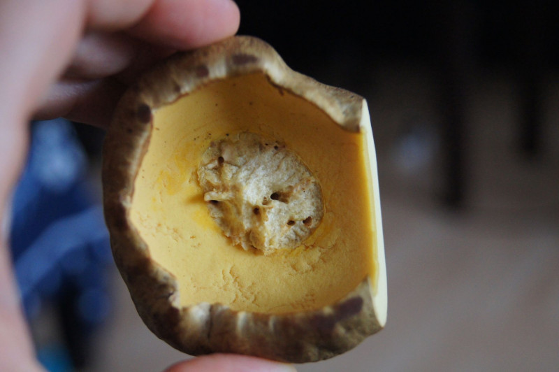Und geschnitten in unseren mitgebrachten Minitöpfen: