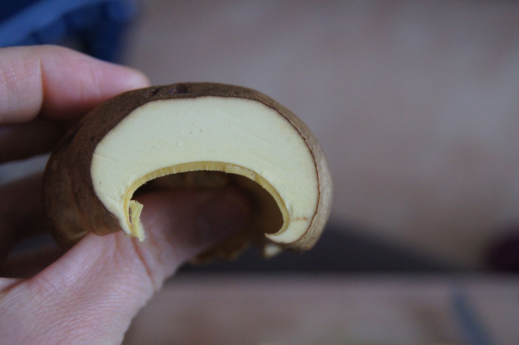 Aber wenn der nicht immer so stark ausgeprägt sein muss oder auch ganz fehlen kann, dann käme der Fahle Röhrling wohl doch in Frage... ist dann für uns in jedem Fall ein interessanter Erstfund.
