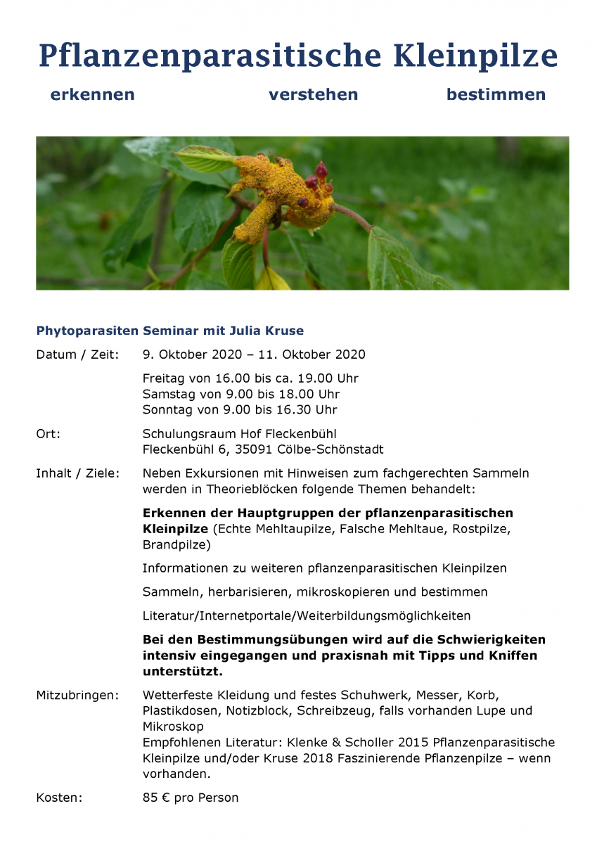 Julia Kurse bietet auf Hof Fleckenbühl das zweite Phytoparasiten Seminar an.