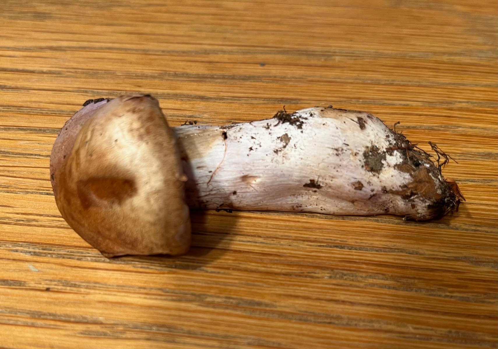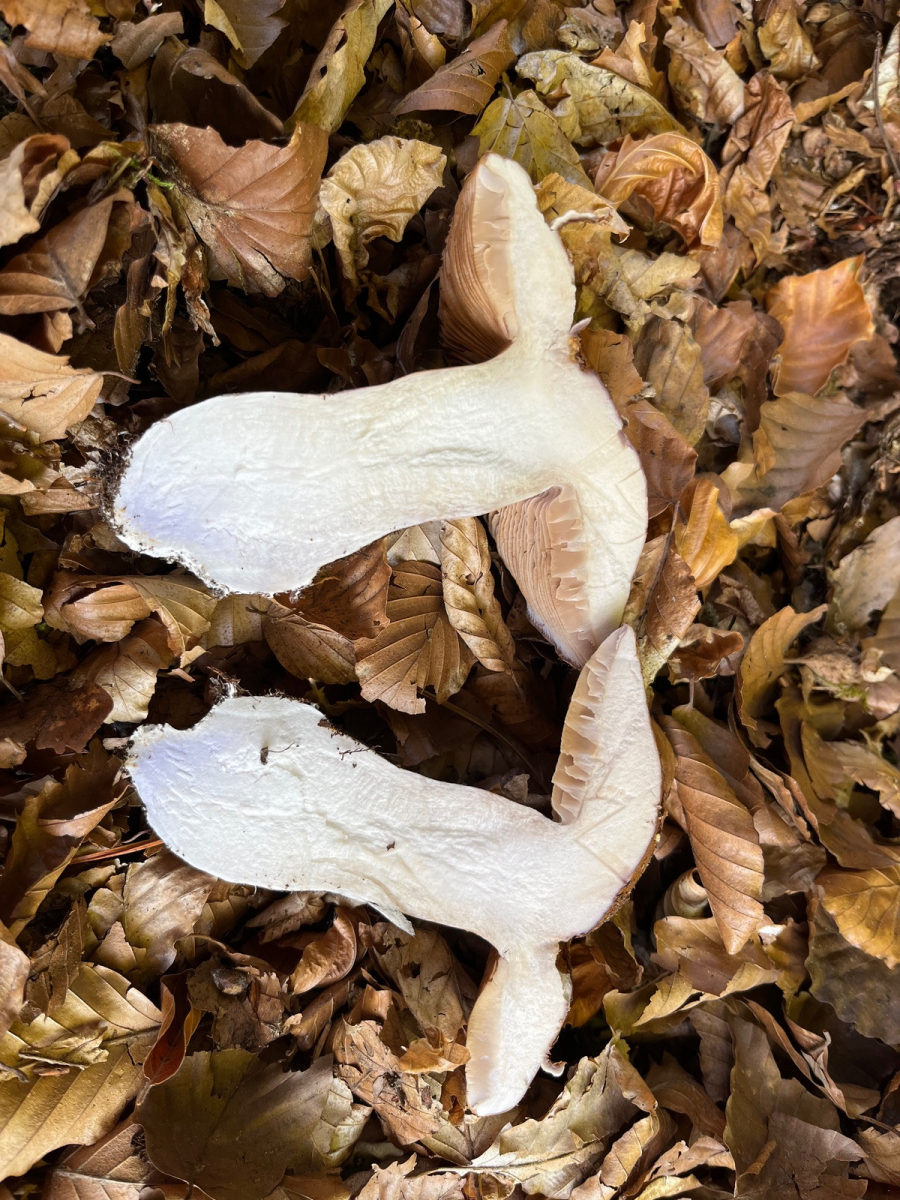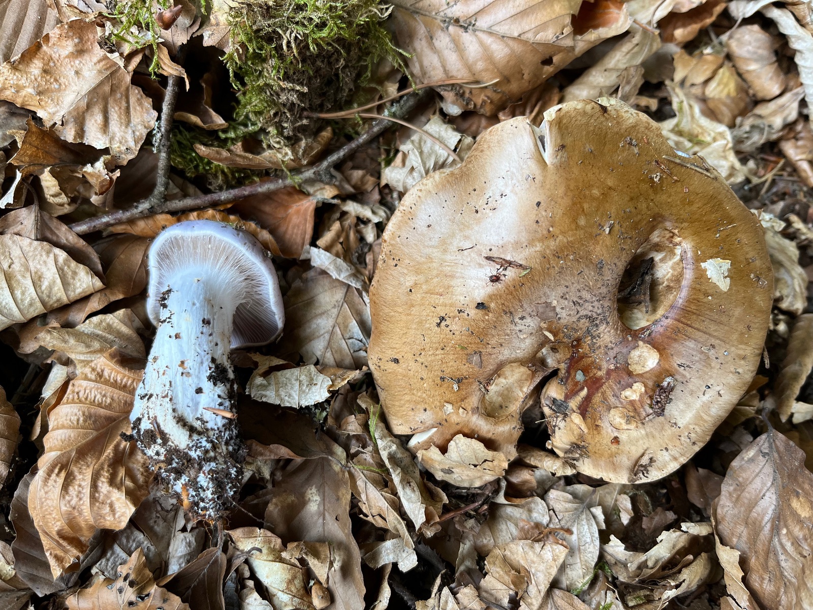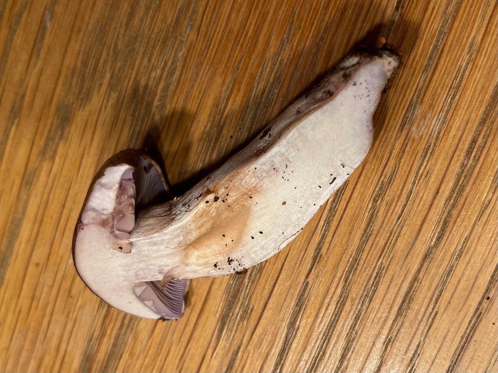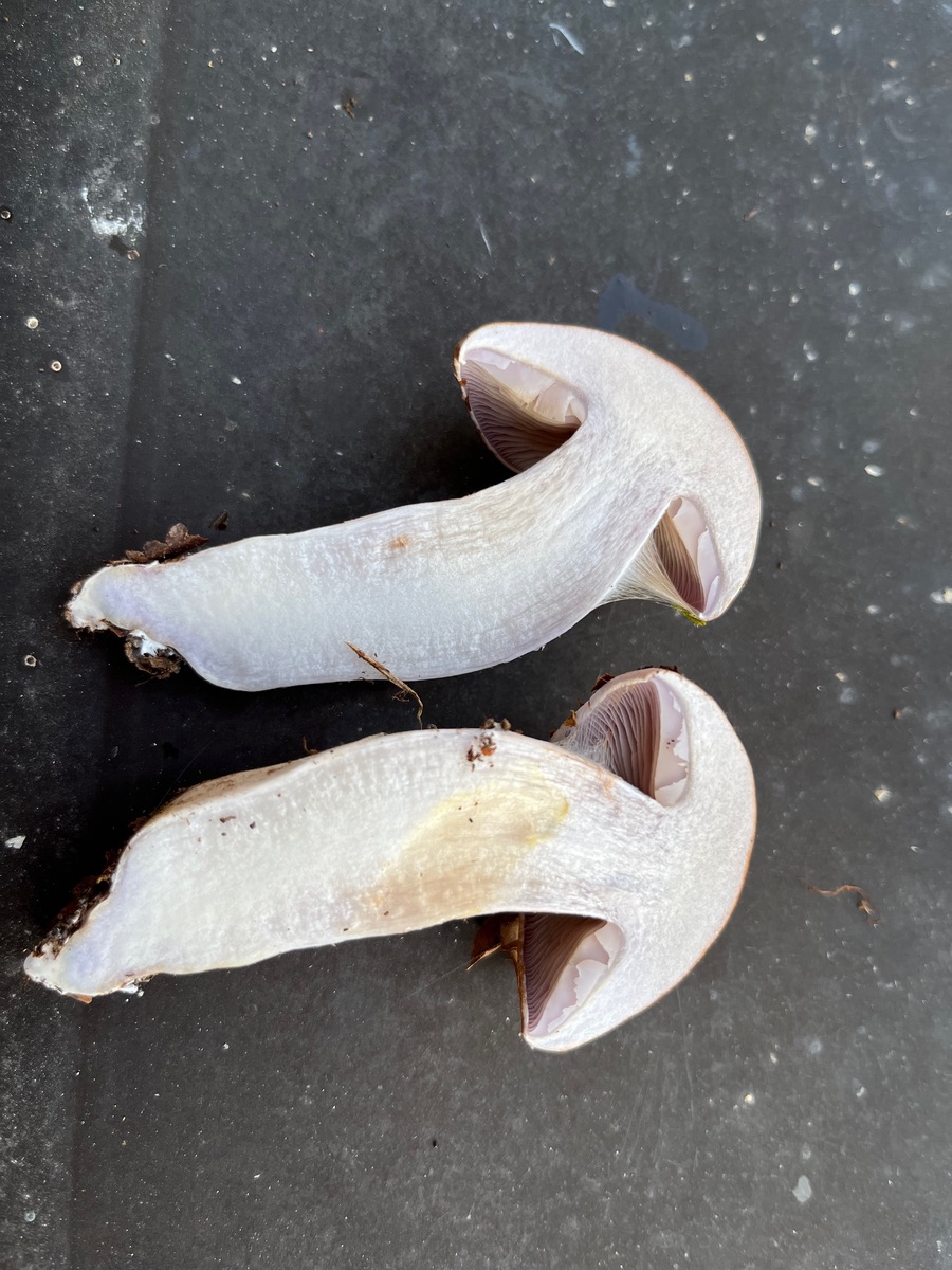 Danke für deine Einschätzung Thomas. Der jüngere Fruchtkörper hatte violette Töne am Stiel, im Querschnitt und in den Lamellen. Die Bilder sind etwas überbelichtet.