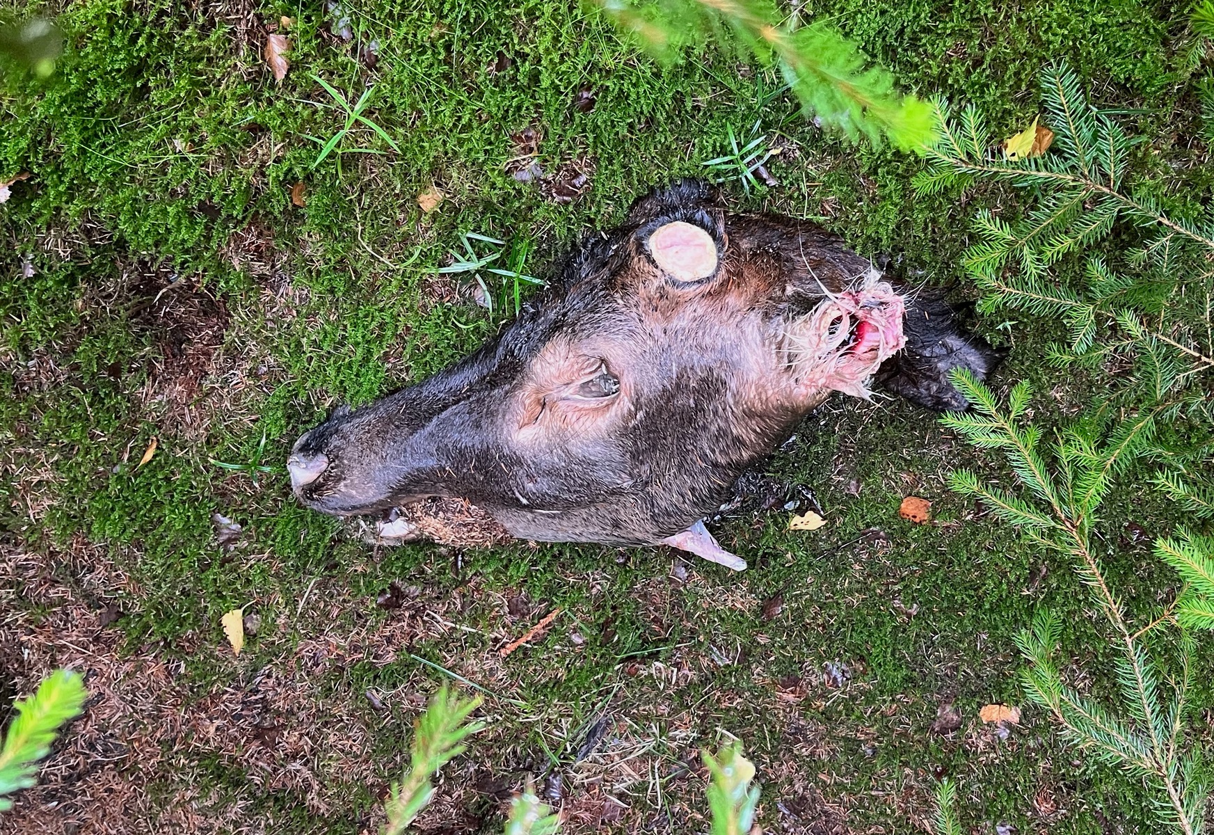 Ich habe mal morgens einen Wildsaukopf im Wald gefunden und dachte an Wilderei.