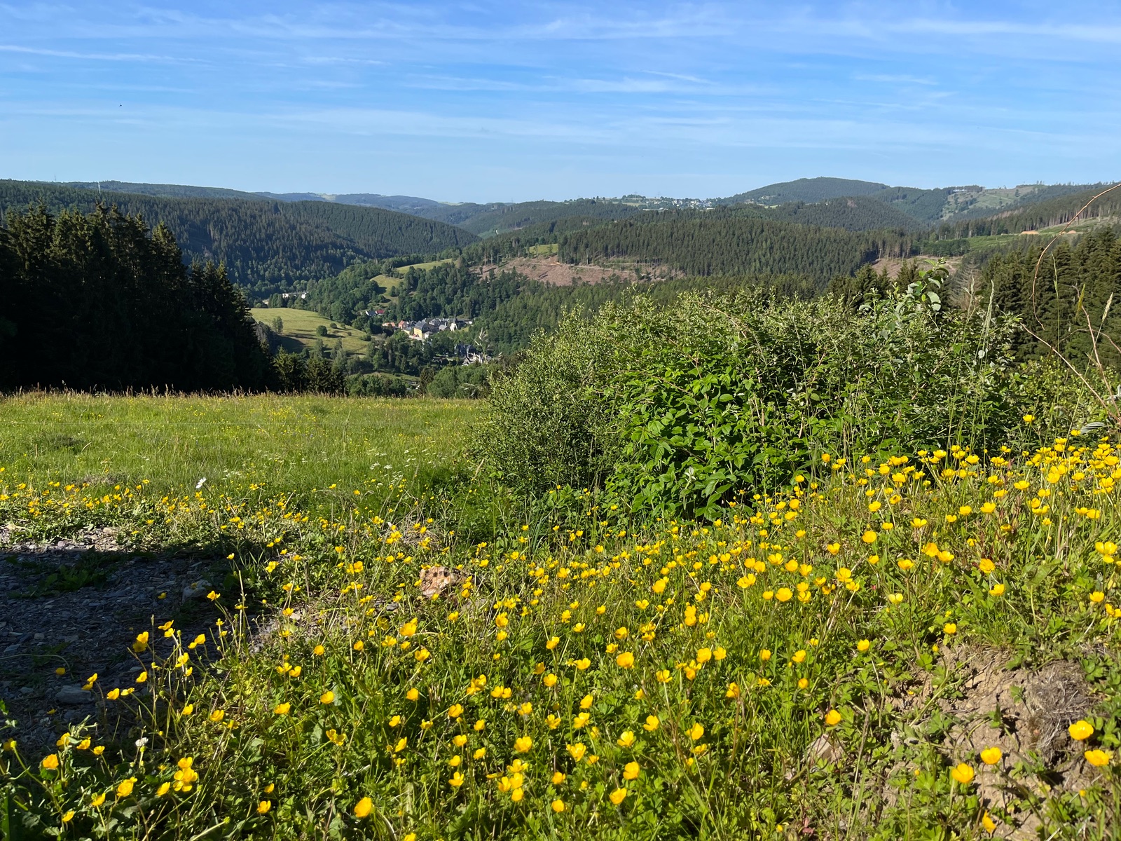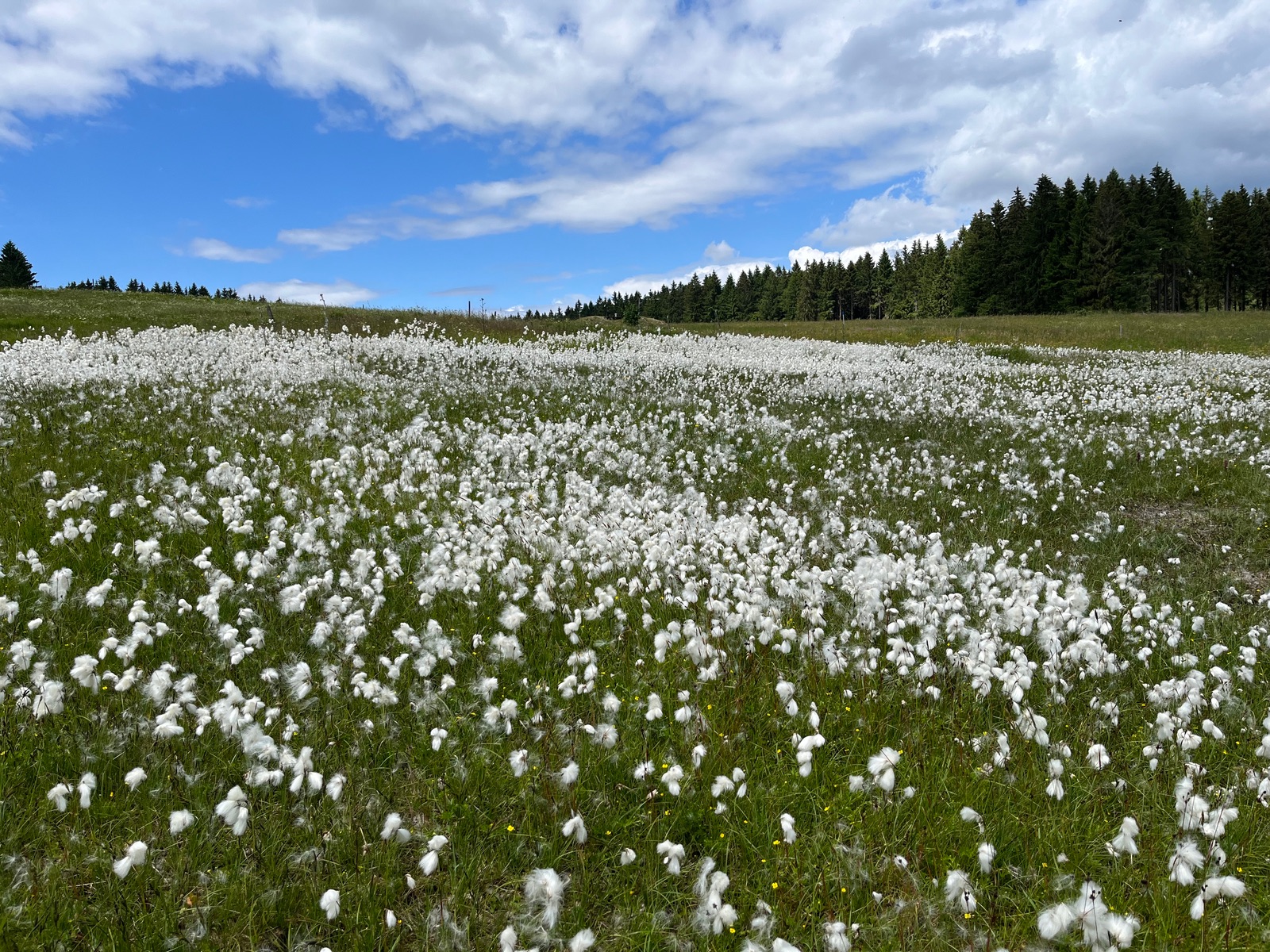 Die Pilzsuche habe ich ja bis auf Weiteres ( Regen, Regen, Regen…) aufgegeben. Dafür spare ich - zumindest Energie und fahre die erreichbaren Wege mit dem Rad. So war ich gestern in Siegmundsburg am Rennsteig. Bei Limbach lockte mich eine Wollgraswiese vom Sattel.