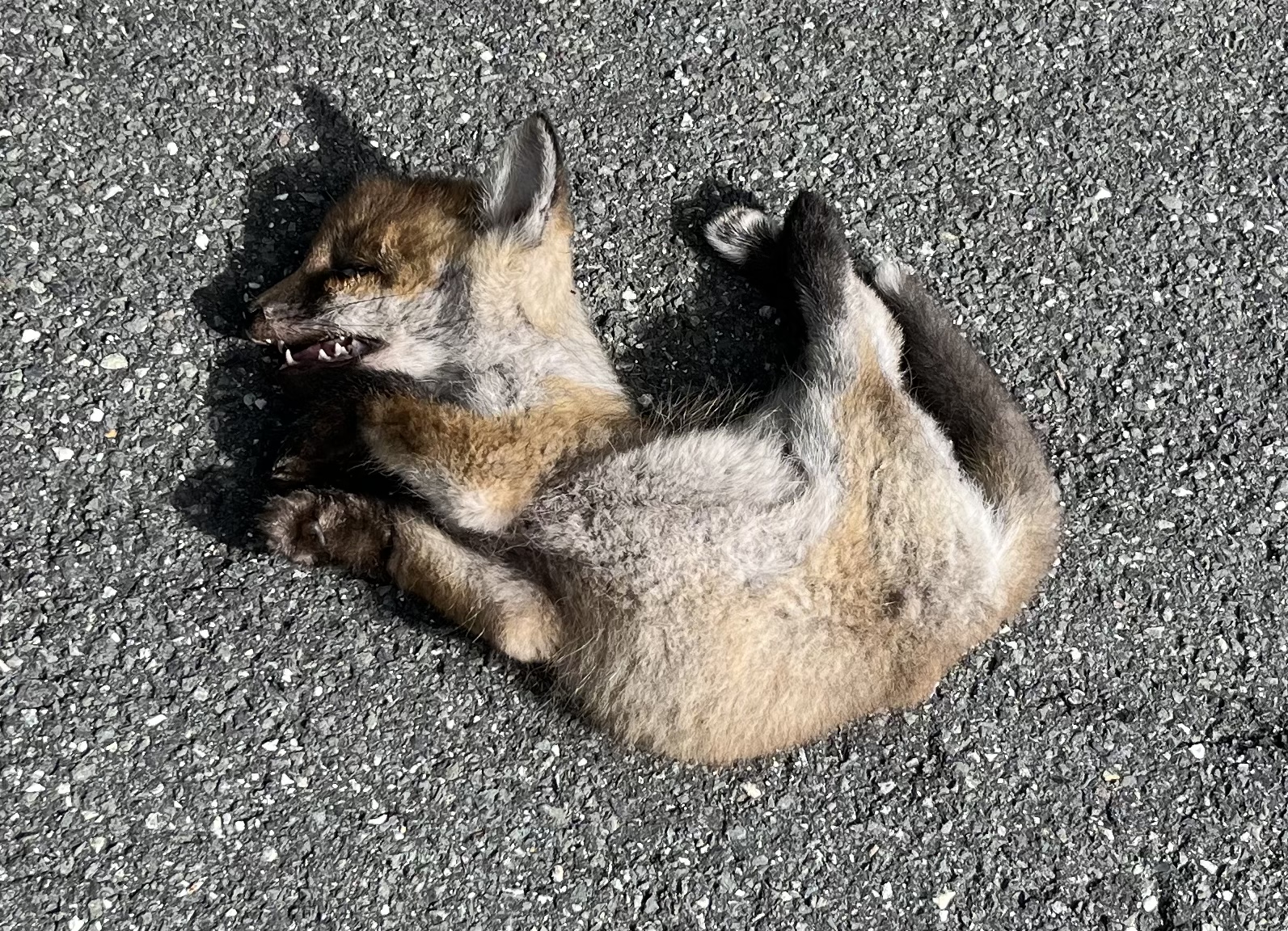 Auf dem Heimweg gab’s eine traurige Begegnung mit einem angefahrenen Fuchswelpen. Da haben Autofahrer und die Mama nicht aufgepasst. Mehr sehen beim Radfahrern hat auch seine Schattenseiten.