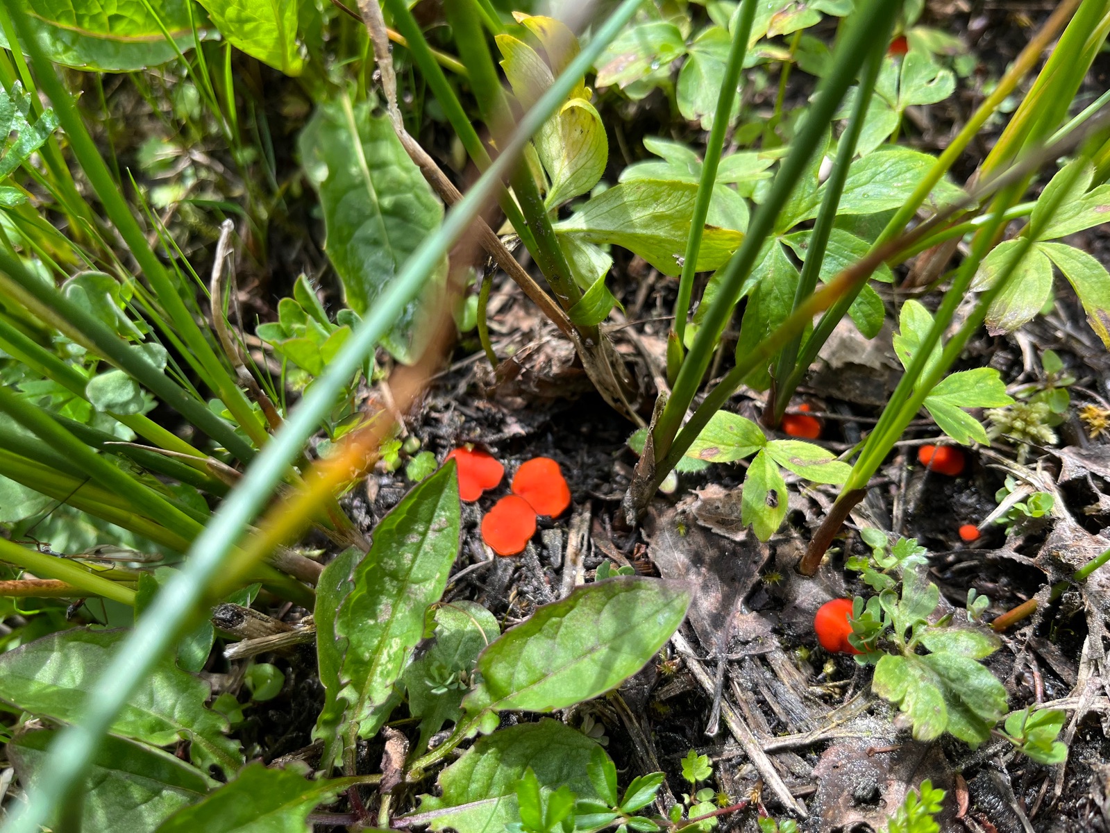und komische rote Farbspritzer auf dem Boden. Wer zum Teufel bekleckert eine Feuchtwiese? Niemand, es waren hunderte Scutellinien. Bei der Artvestimmung hab ich mir wie beim letzten Mal schon die Karten gelegt. Ovalsporer, warzig ornamentiert. Zu 60% bin ich beim Orangefarbenen Schildborstling. Aber es kommen noch ein, zwei andere Arten infrage. Egal, sie sind auch namenlos süß.