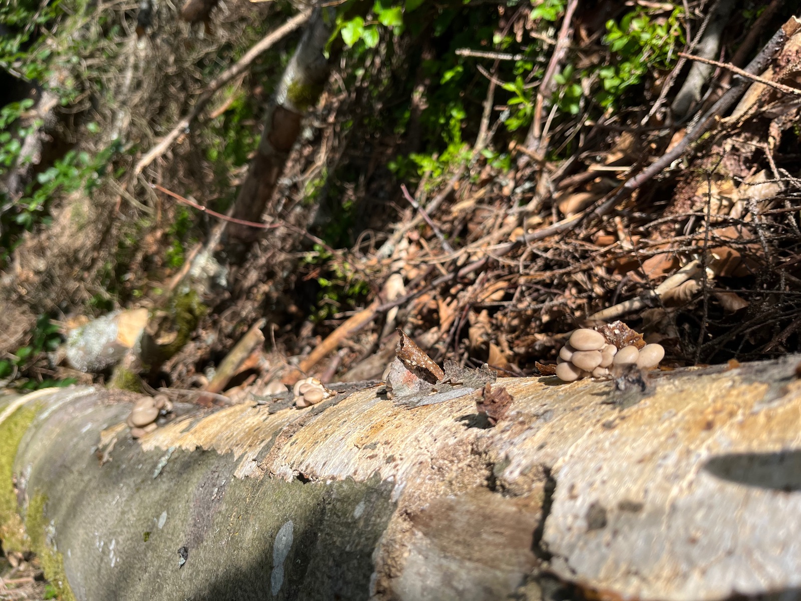 Heute war Holz „machen“ angesagt. Kein Spaß, die dicken Buchen sicher den Hang hinunter zu bugsieren. Dann der Pilzfund des Jahres! Dieser Stamm kommt definitiv nicht in den Kamin sondern wird im Garten kultiviert. Die Winzlinge musste ich ernten, um den Stamm zu bewegen. Winzig klein noch aber schon lecker.