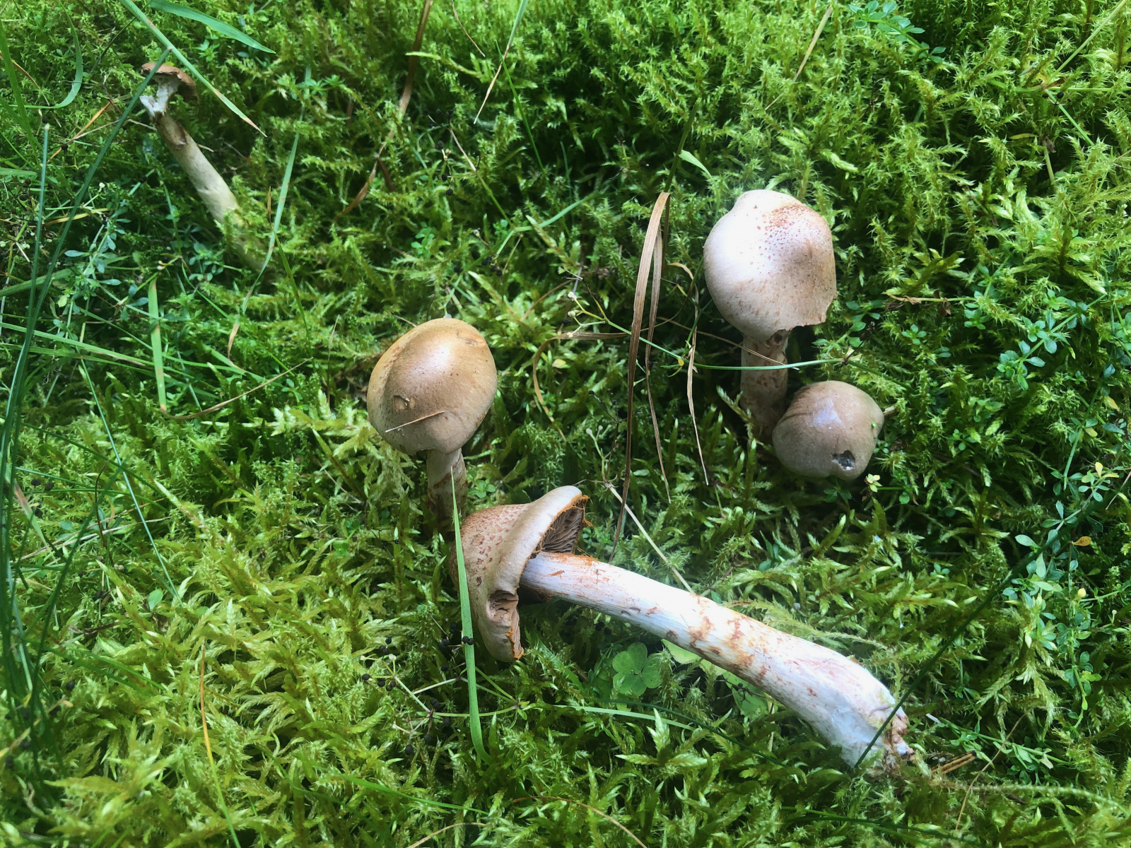 Und dann doch noch mal etwas überstrahlt - aber immerhin als Spitzgebuckelte Rauköpfe - Cortinarius rubellus Erkennbares.