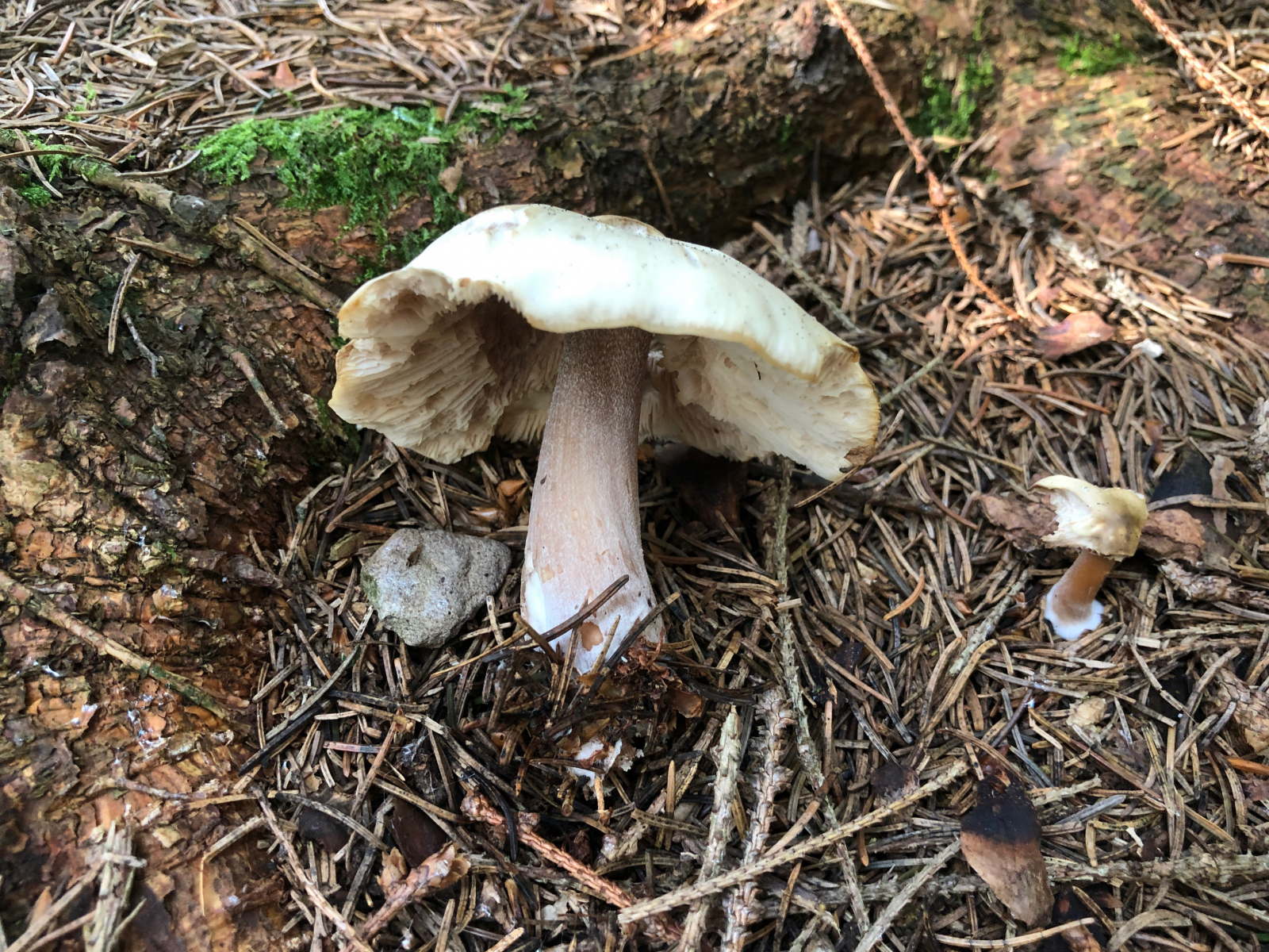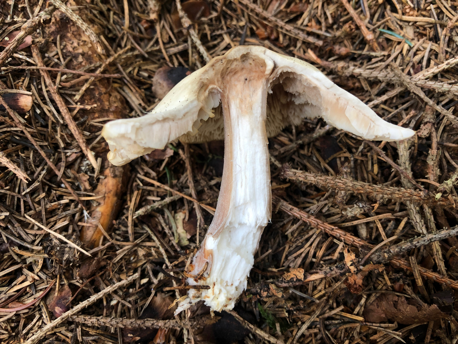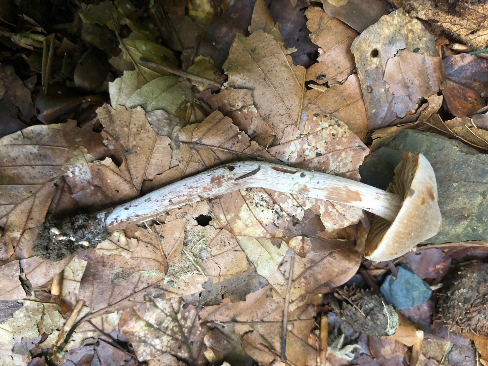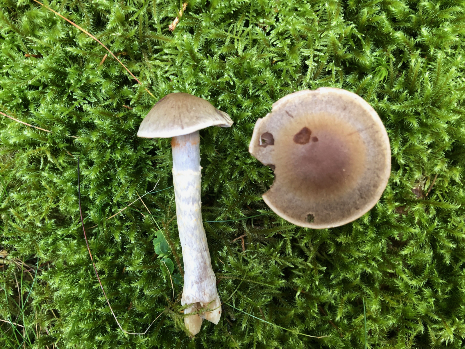 Das ist wahrscheinlich ein Weißsporer. Weitergehende Ideen hab ich hier nicht. Allerdings wenn ich mir die rübige Stielverlängerung so ansehe, hätte ich vielleicht doch eine Idee. Aber es bleibt ein Ratepilz.