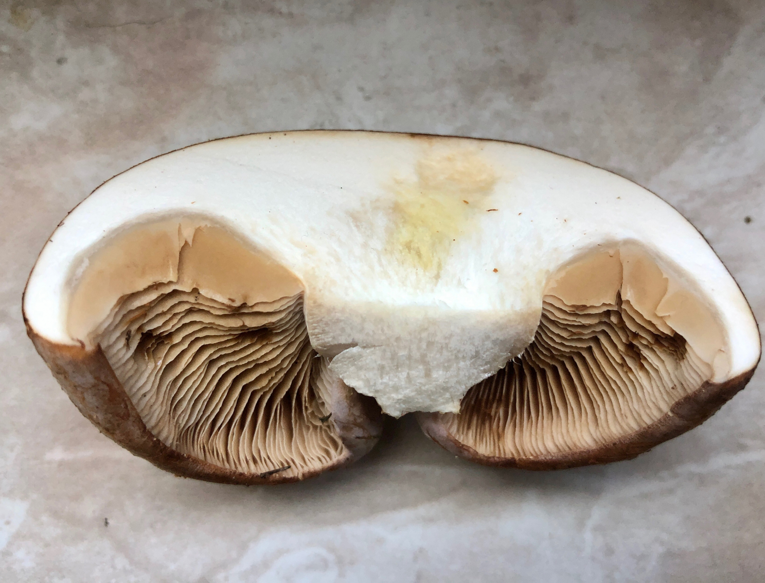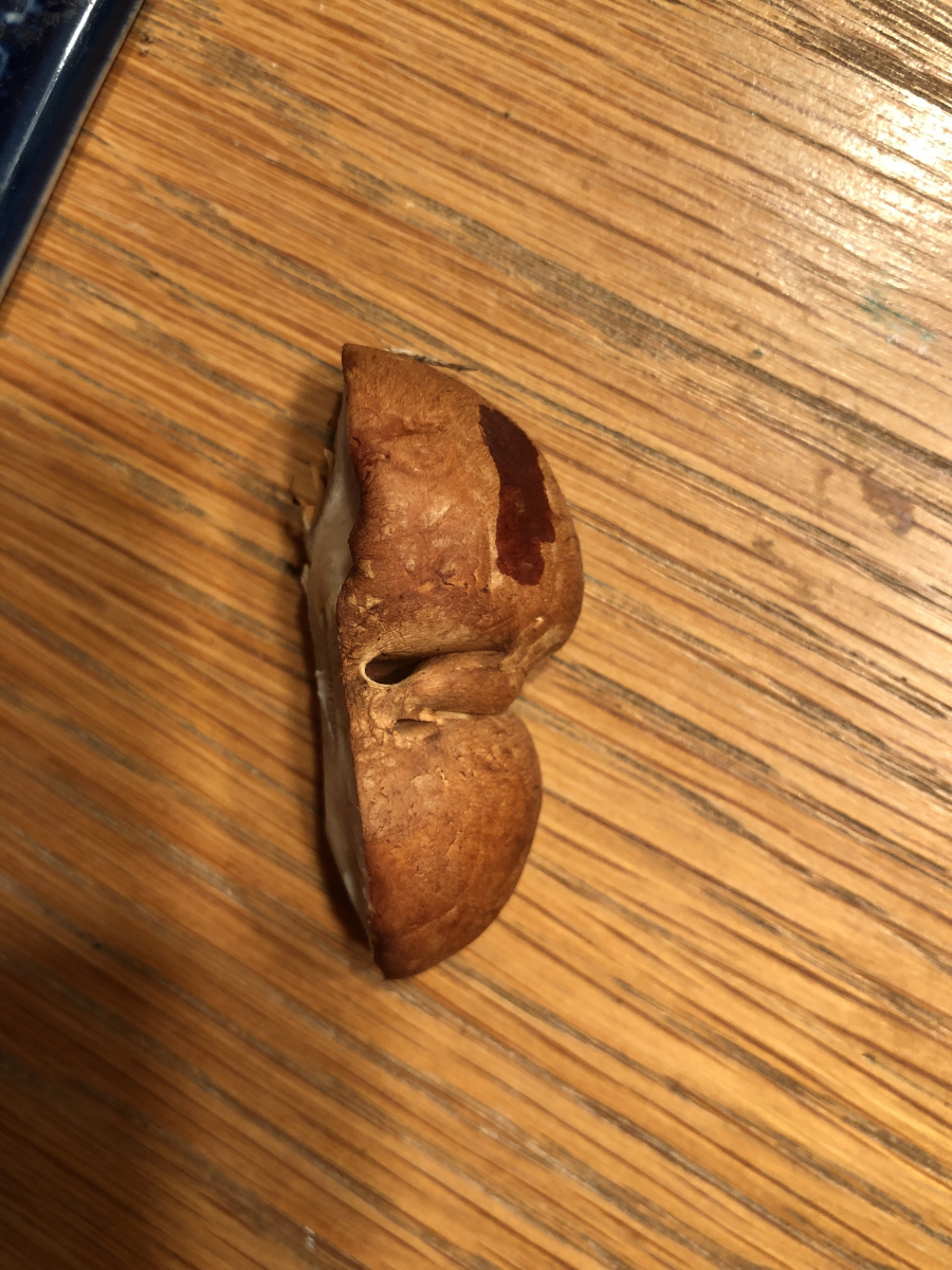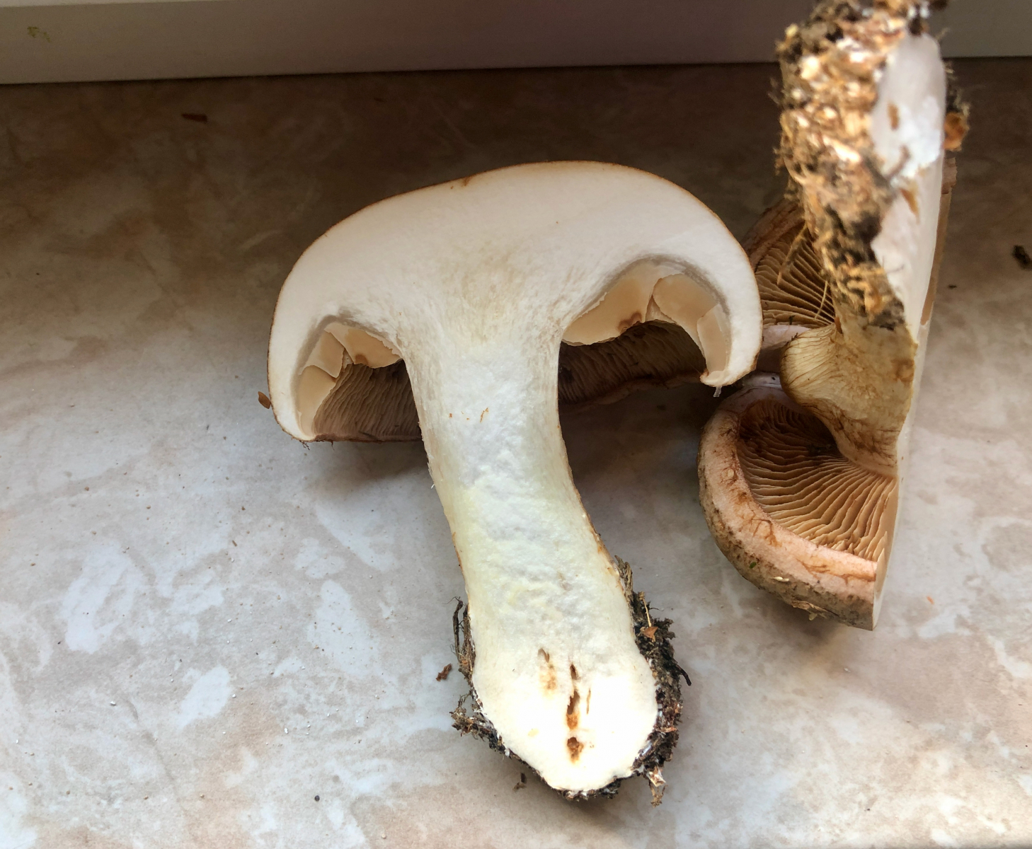 Der Stiel wirkt irgendwie aufgequollen, ist in der Mitte im Alter teilweise hohl, die Stielbasis ist bereift