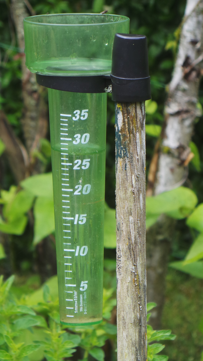 bei mir musste letztes Jahr in der Dürre so ein Plastik-Regenmesser angeschafft werden. Besser hat der die Sache allerdings nicht gemacht, Denner blieb meist leer. Erst in diesem Frühjahr bewährt er sich und ist immer wieder mal gut gefüllt.