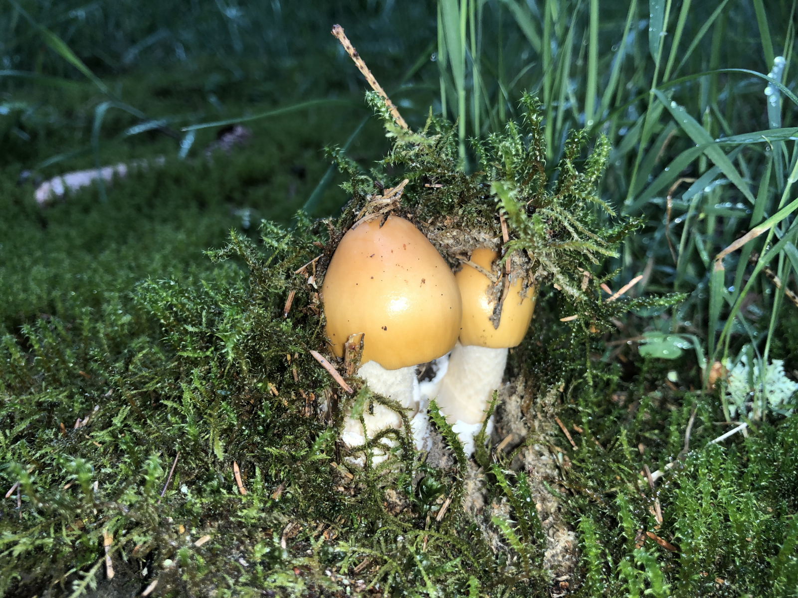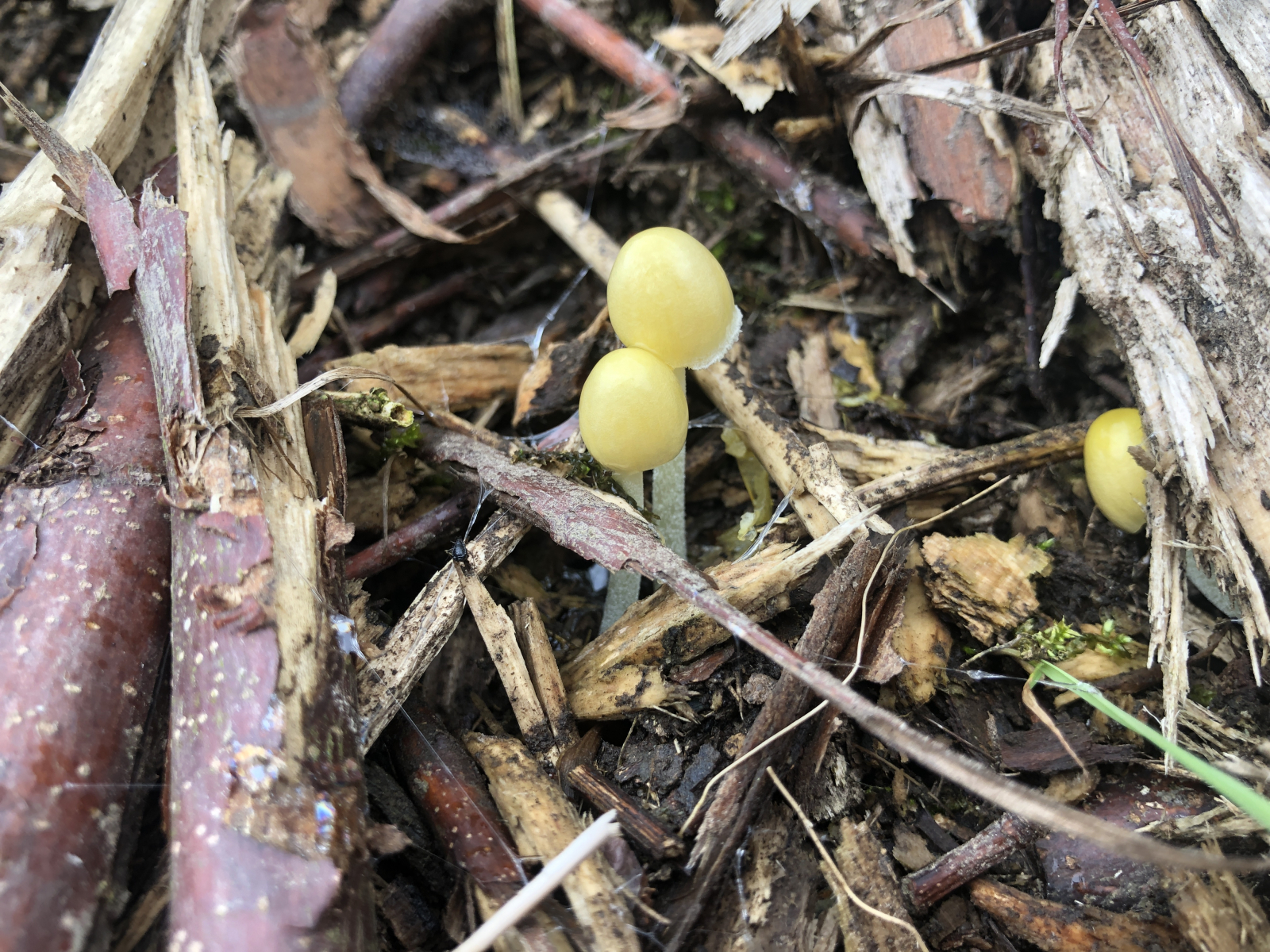 Aber nachdem heut früh mein Plastikregenmessteil vom Typ Radelfungus sieben Liter anzeigte, war ich einigermaßen versöhnt. Umso mehr, als ich vorhin neben den üblichen Verdächtigen diese beiden Frischlinge fand.