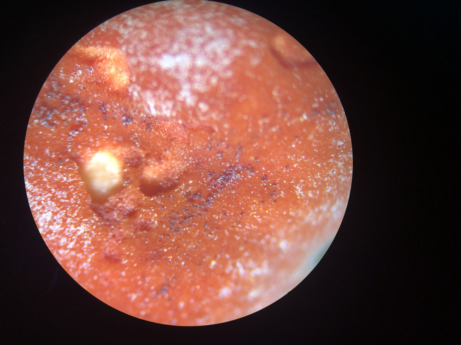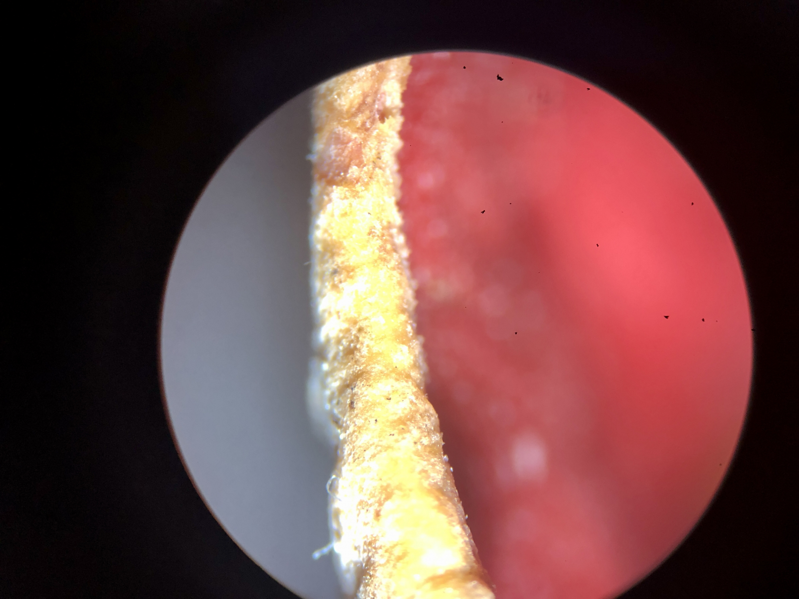 Danke für deine Einschätzung, lieber Habichts-Peter. Das zweite Bild zeigt den leicht eingerollten Rand des Fruchtkörpers unter der Stereolupe. Kruschelige Haare gab es definitiv nicht. Aber ich hatte im Netz auch Vergleichsbilder gefunden, bei denen die ebenfalls fehlten. Aber dass die Verdickungen der Paraphysen auch fehlten, hat mich dann doch irritiert. Ich nehme an, dass die weißen Stellen Schimmelpilze sind. Was denkst du, dass ich da finden kann?