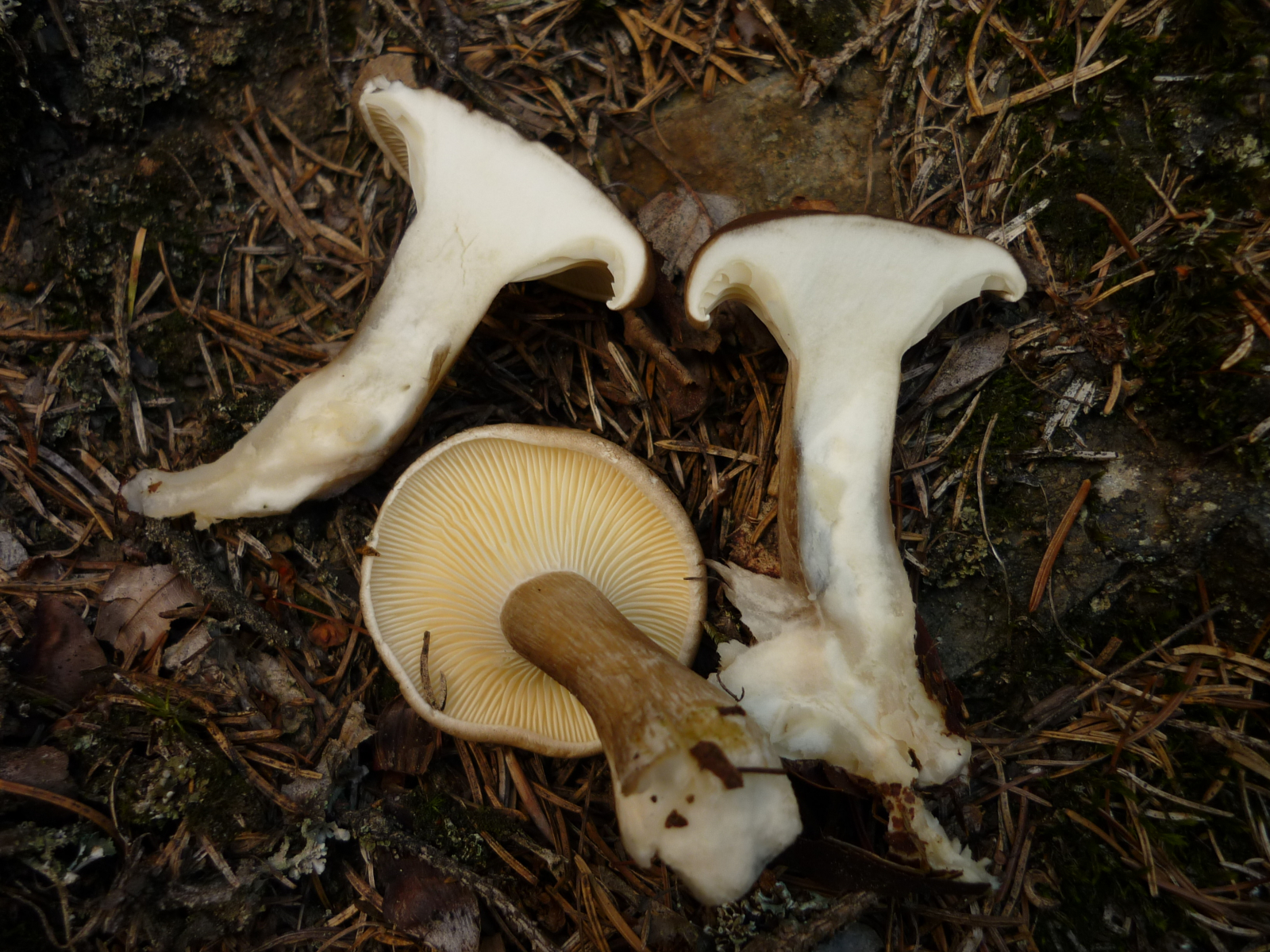 8. Hier noch einige mit einem dicken Fuß und diesmal einem deutlichen Schleier. Sie wuchsen gesellig. Geruch ist naja, Geschmack neutral, unter Fichten. Auch vielleicht etwas Cortinarisches?