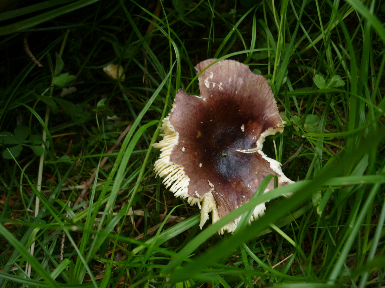 Hier ein Täubling. Welche kämen infrage? Lamellen hellocker/cremefarben. Mild im Geschmack ansonsten schon so gut wie gegessen - von Maden und Schnecken.