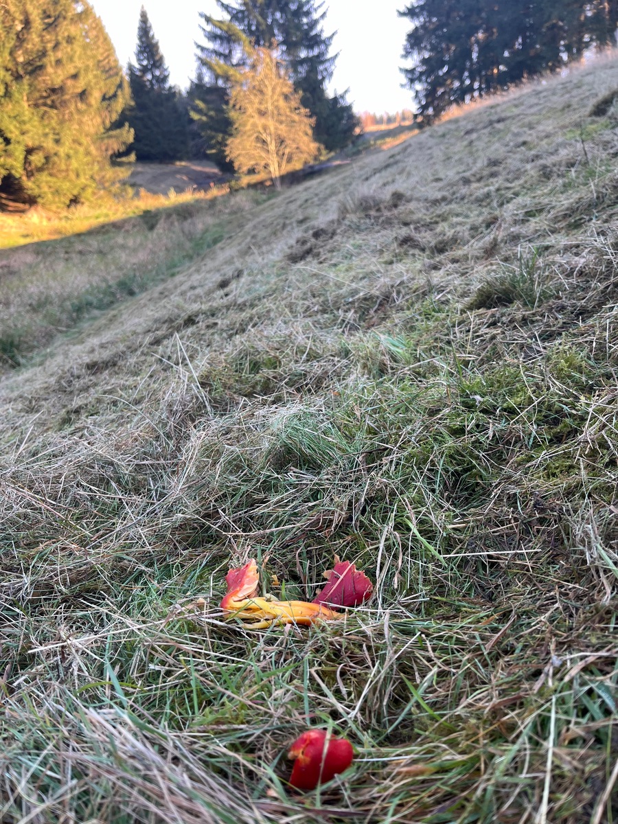 Aufklärung leiste ich wo ich kann, glaub mir. Ich habe mich mit einer Mitarbeiterin einer Naturschutz Behörde und dem Bauern, der eine andere ehemalige Saftlingswiese bewirtschaftet, vor Ort getroffen. Im Folgejahr hat der Bauer erneut Mist ausgebracht und lässt seit Jahren das Mähgut lieben, bzw. letztes Jahr hat er Heuballen gemacht, die er die allesamt unter den Bäumen. Mal sehen was er tut, wenn da kein Platz mehr ist.