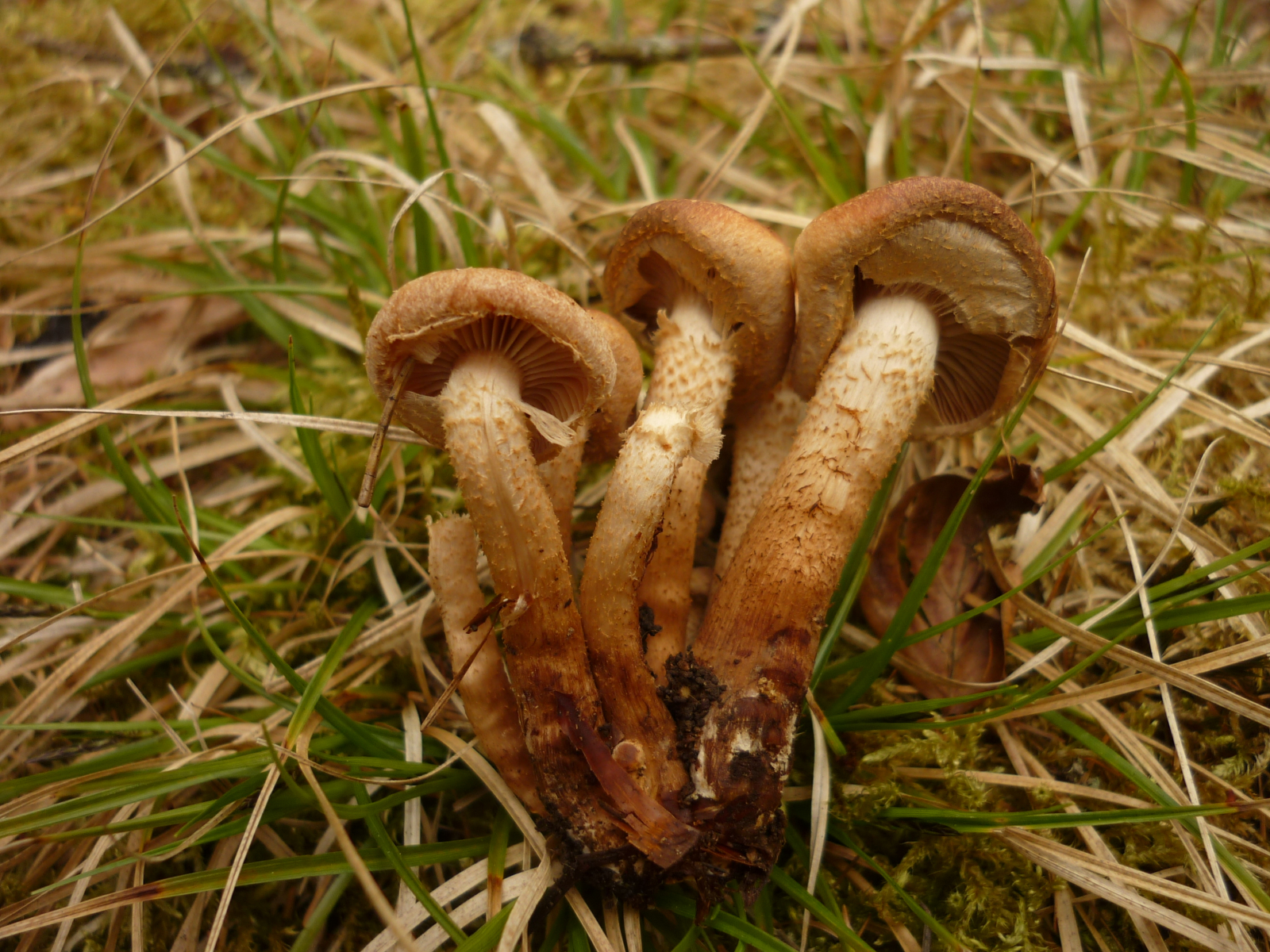 mir müssen die einzigen Pilze in der Region durch die Lappen gegangen sein, die hier gewachsen sind. Ich hatte gehofft, sie würden noch wachsen und sich zweifelsfrei als Stockschwämmchen entpuppen. Aber die Hüte wachsen nicht weiter und bekommen nicht das charakteristische Aussehen. Was meint Ihr?