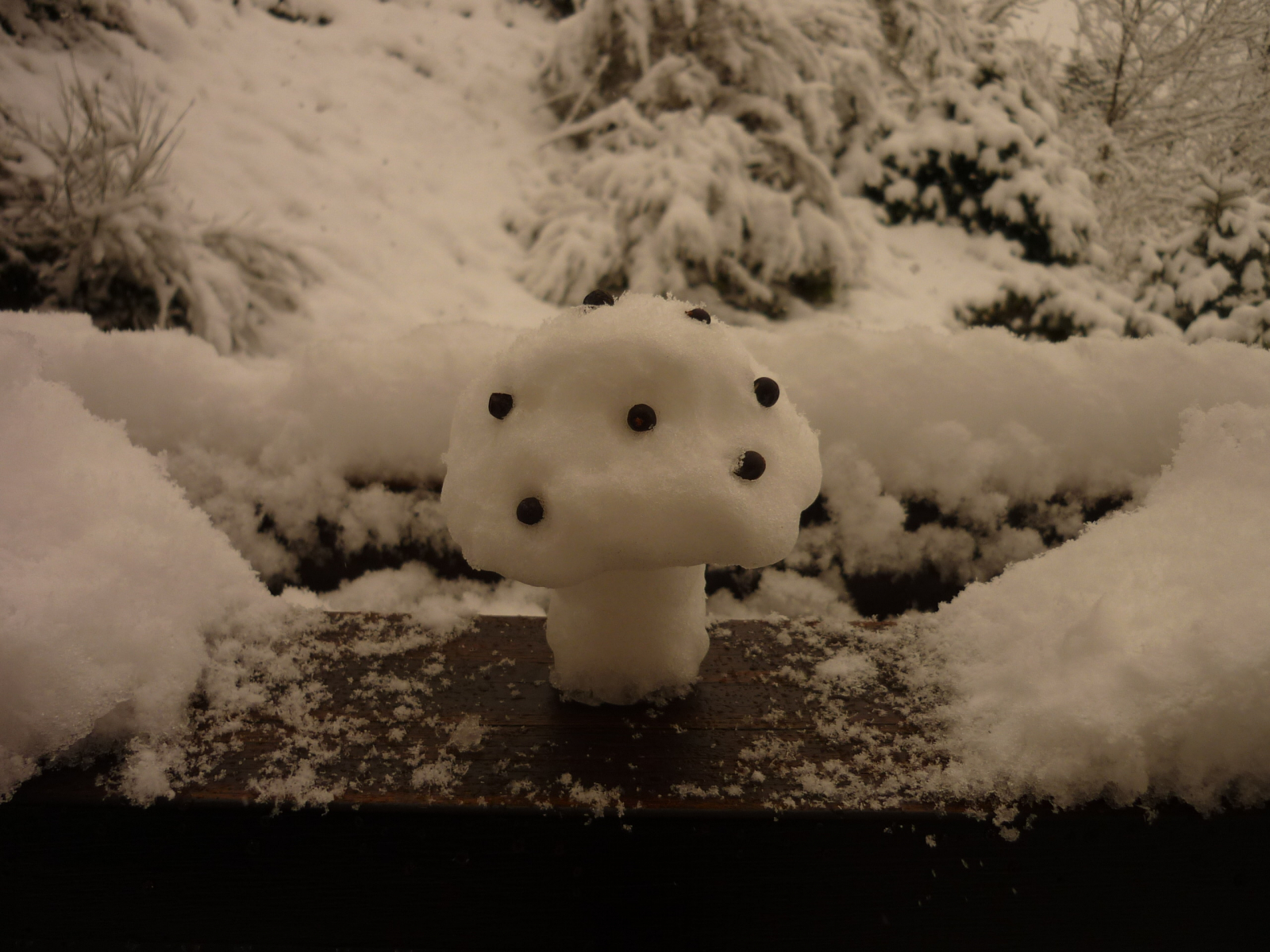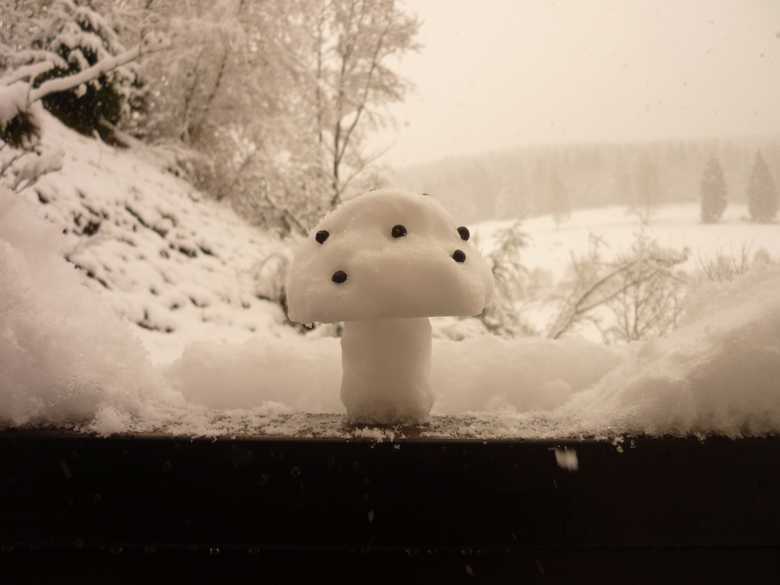 Also raus in den Schnee (außer Brassela, Du gehst unter die Federdecke). Thomas, hab ihn unter dem Schneebeerenstrauch gefunden, Da musst du gucken! -
