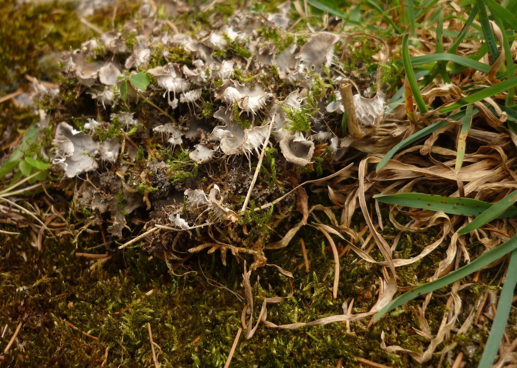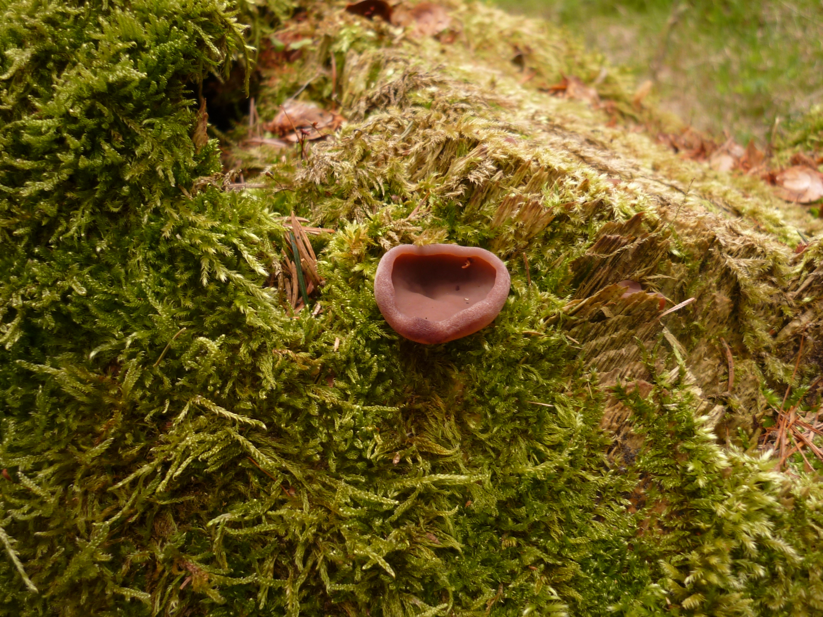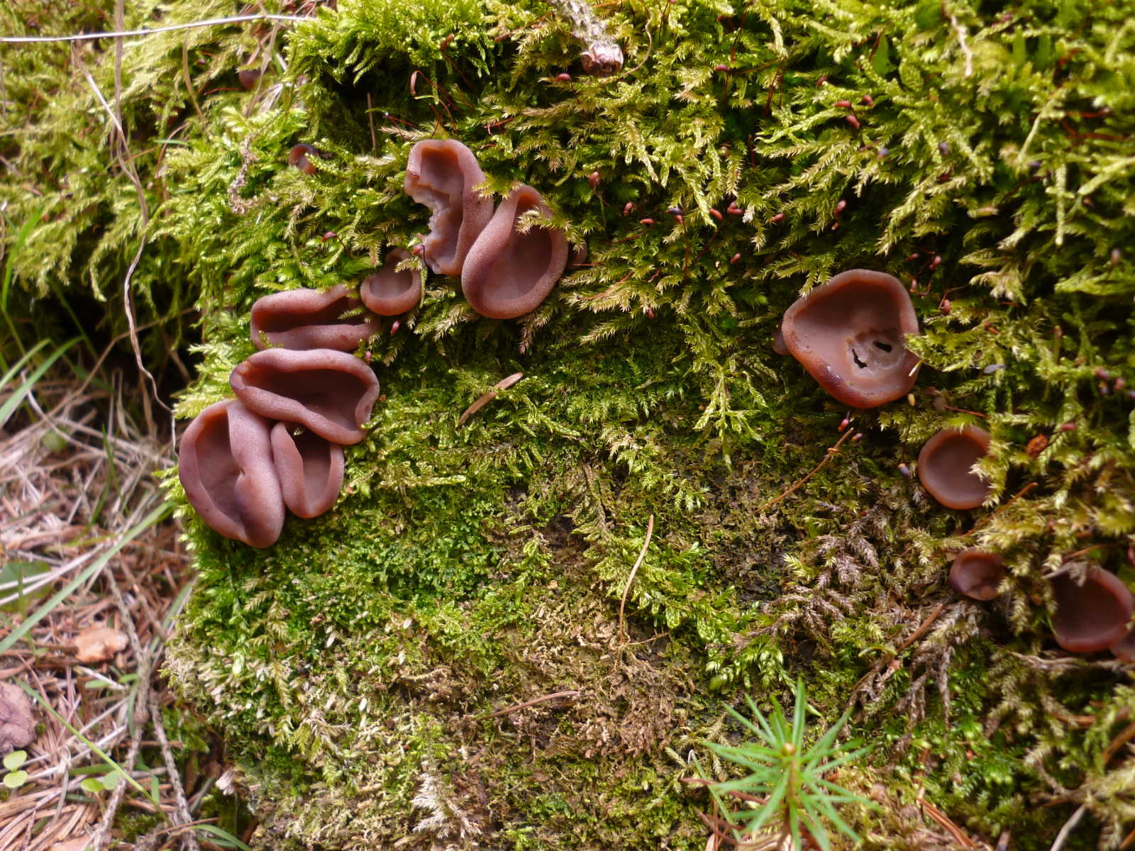Zu guter Letzt ging es dann zu der beliebten Sumpfhaubenpilzstelle. Dort hat Peter tatsächlich noch ein paar schöne Anemonenbecherlinge auftreiben können.