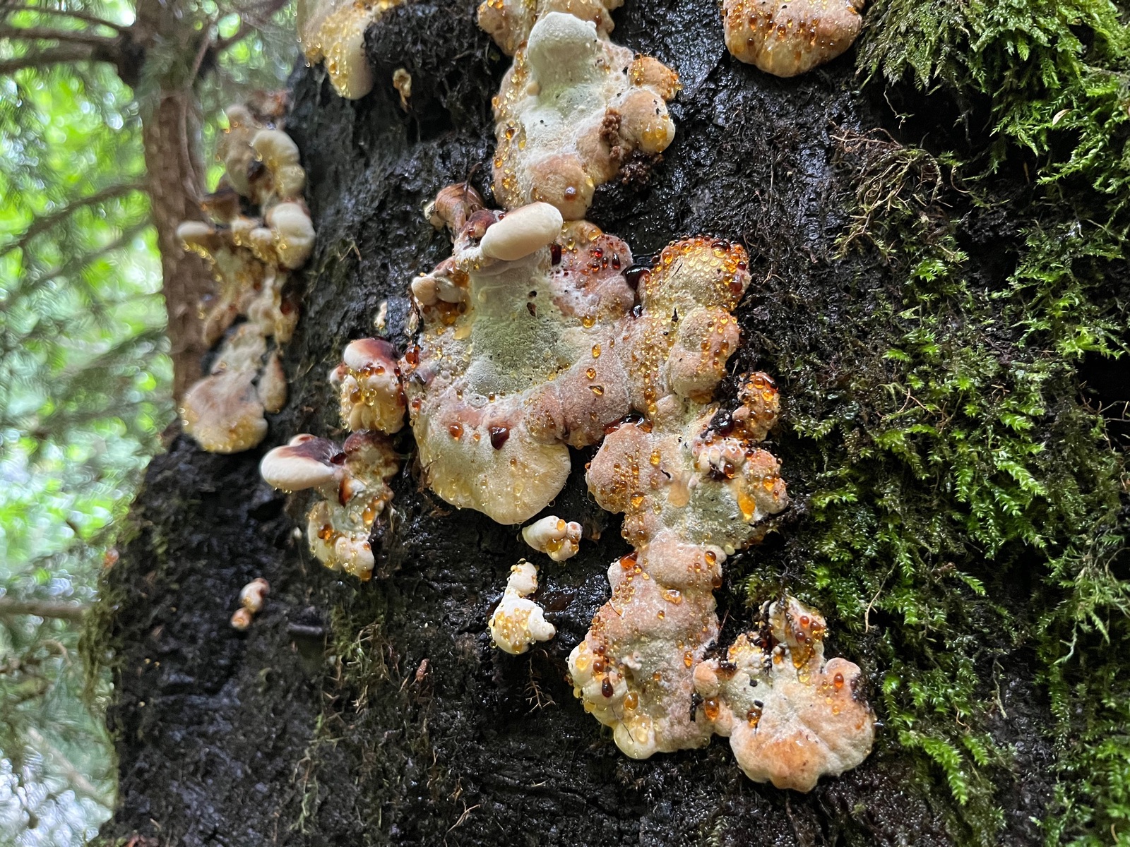 Es gab diese auffällig guttierenden Pilzen an Buche, die sich bei genauerer Betrachtung als Laubholz Harzporlinge - Ischnoderma resinosum erwiesen.