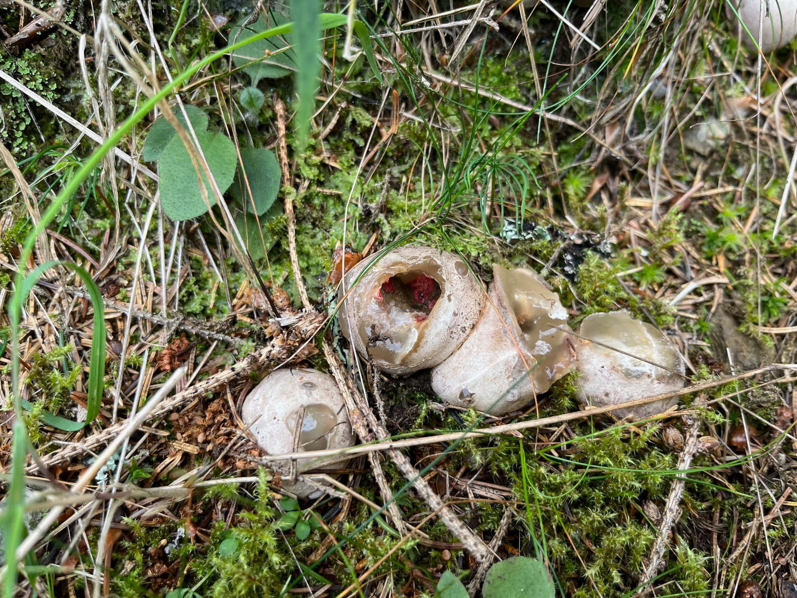 Hierzulande stehen gerade auch viele Pilzstiele herum, weil der Starkregen die Hüte „weggewaschen“ hat.