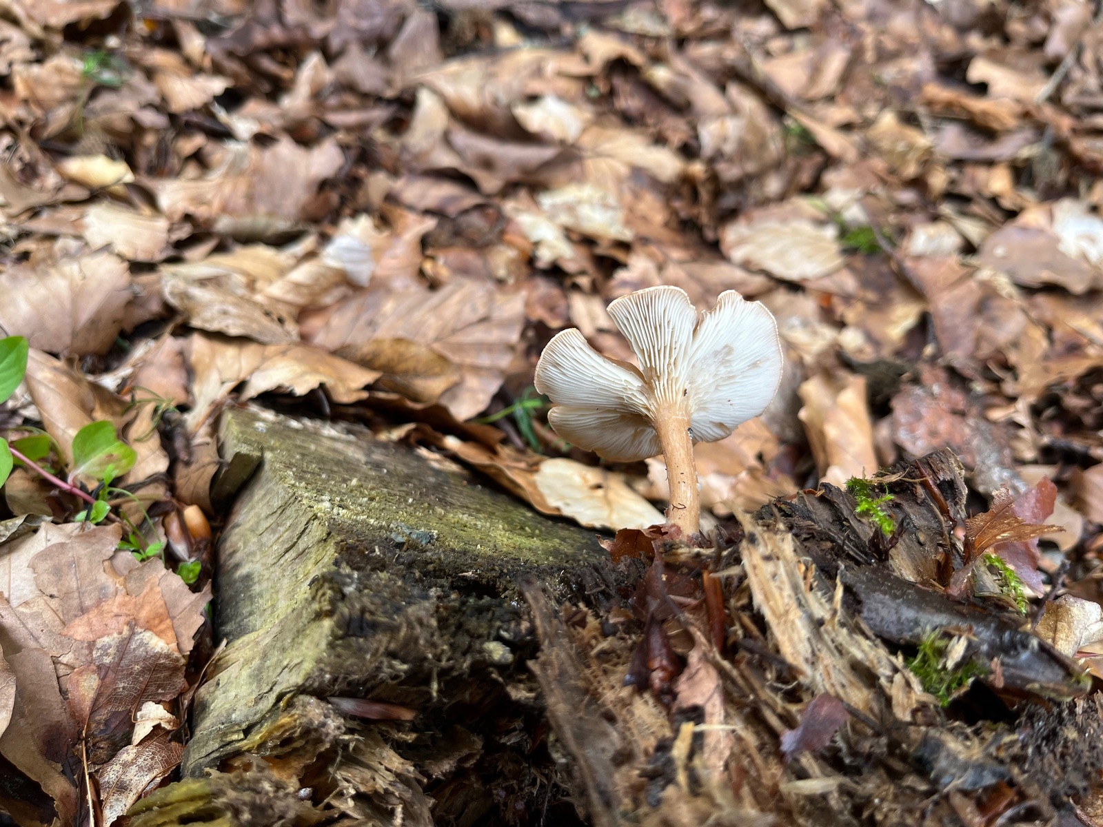 dein keine Idee Pilz nr. 16- ist Clitocybe sp vielleicht gibba oder ein ähnliches Trichterling . das ist kein Holzpilz , Mycel gehet einfach durch alte teilweise vermorschte Holz - Stamm