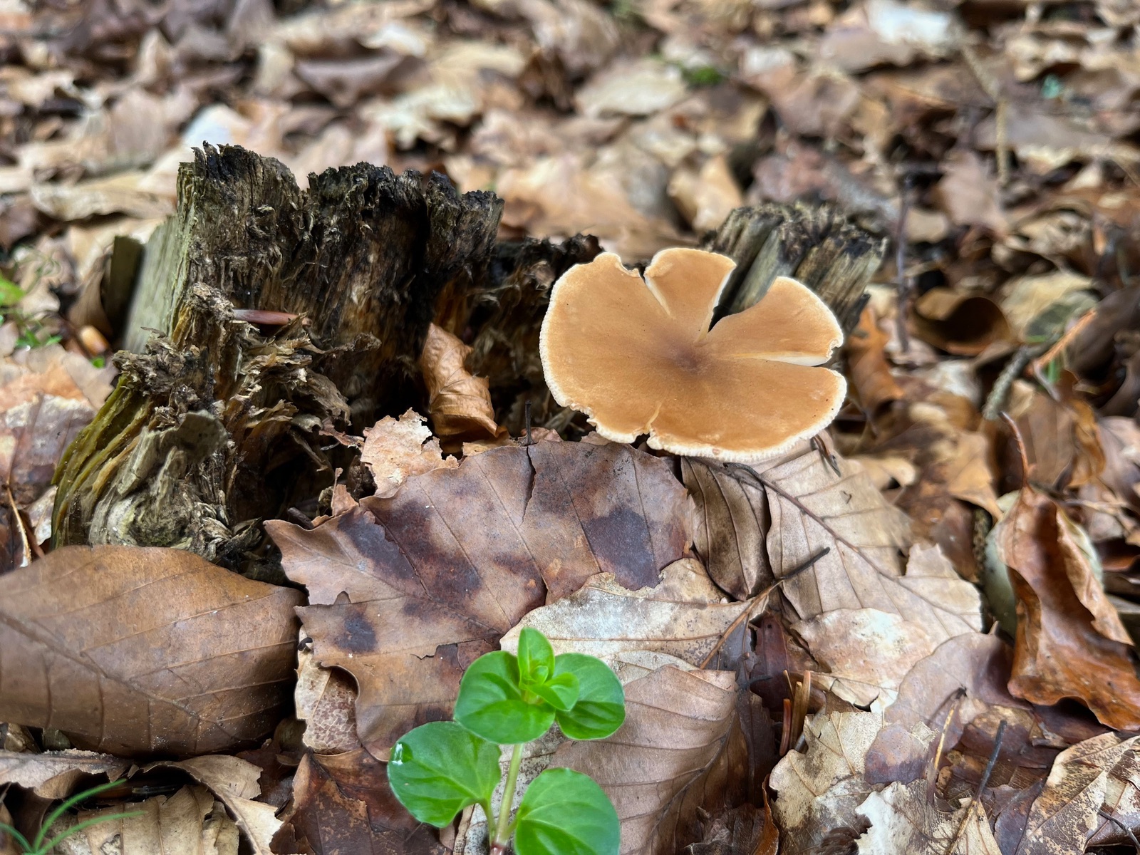 16. Zu diesem Pilz auf Holz habe ich keine Idee. Vielleicht ein Rübling? Bestimmt wisst ihr, was das ist.