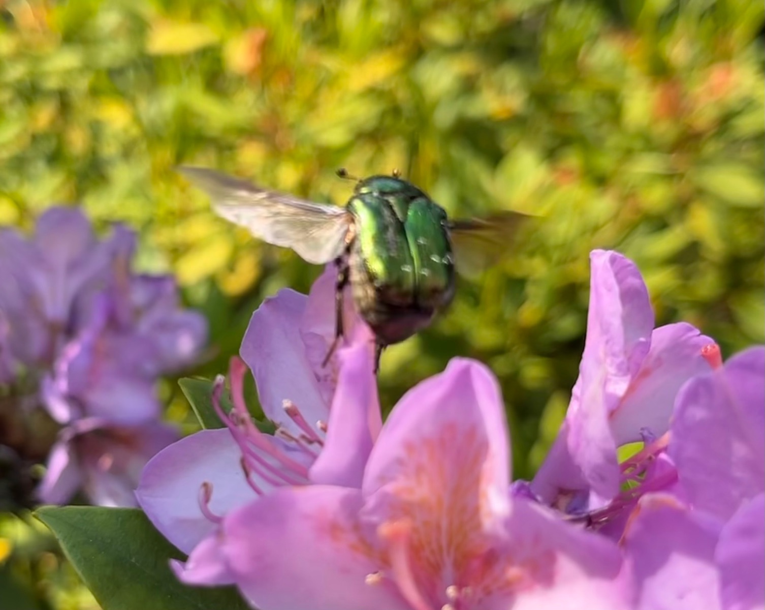 Der Goldglänzende Rosenkäfer im Abflug