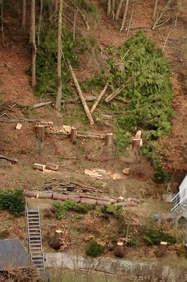 14. Dann wechselten wir in ein anderes Habitat. Müllfrei, aber mit seit zwei Jahren zunehmenden Kahlstellen an den ehemals bewaldeten Hängen. Trotzdem immer noch ganz schön. Das Tal der Weißen Schwarza. Hier fanden wir u.a. den Pilz dem die Anfrage am Anfang galt. Hier ein Feuerschwamm an Erle.