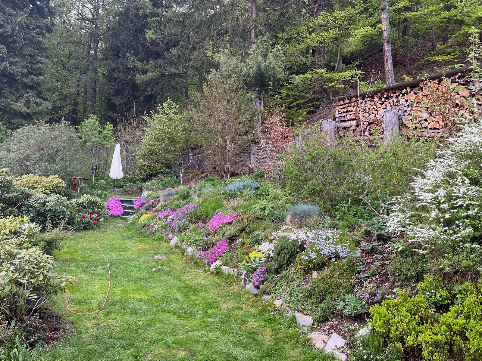 1. Ein erster Blick ins Habitat. Unter dem Frühlingsgrün verstecken sich die anthropogenen Hinterlassenschaften des letzten Jahrhunderts. Stellvertretend posiert ein Überbleibsel aus der Zierkeramik.