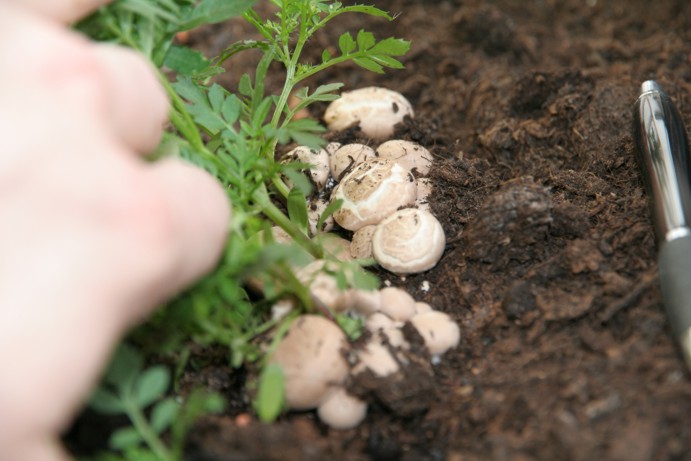 Sie wachsen bei mir in einem Balkonkübel mit ca. 1 m ² Fläche auf der Ostseite. Sie entspringen in der Nähe der Wurzeln von in der Küche selbst gezogenen Zierpflanzen (weiß nicht, was das für Blumen sind) ... aber es sind 2 verschiedene Arten von Zierpflanzen, die ca. 50 cm voneinander entfernt im Kübel ausgesetzt worden. Und jeweils dort kommen aus dem Wurzelwerk diese Pilze.