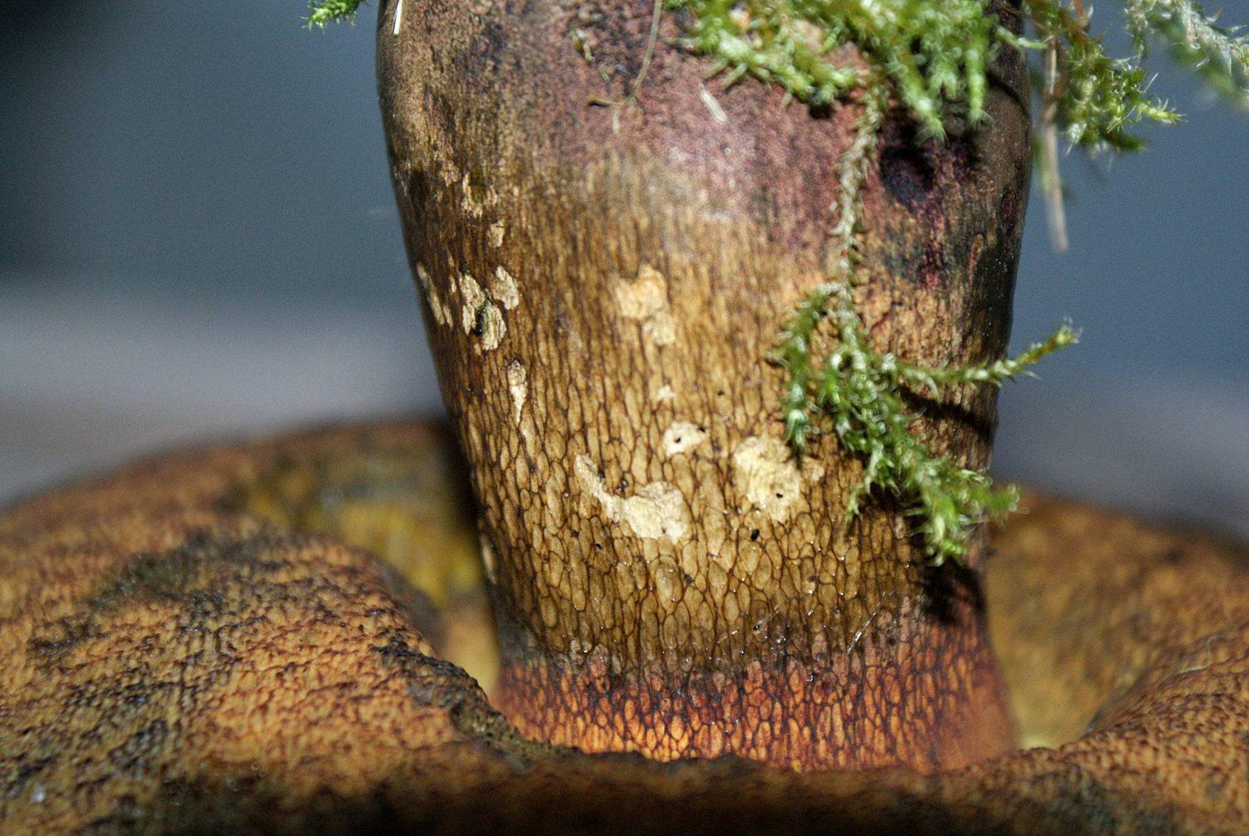 Stiel: Hellbräunlich- bis hellockerfarben, Helles Netz, an einer Stelle ist das Netz bräunlich