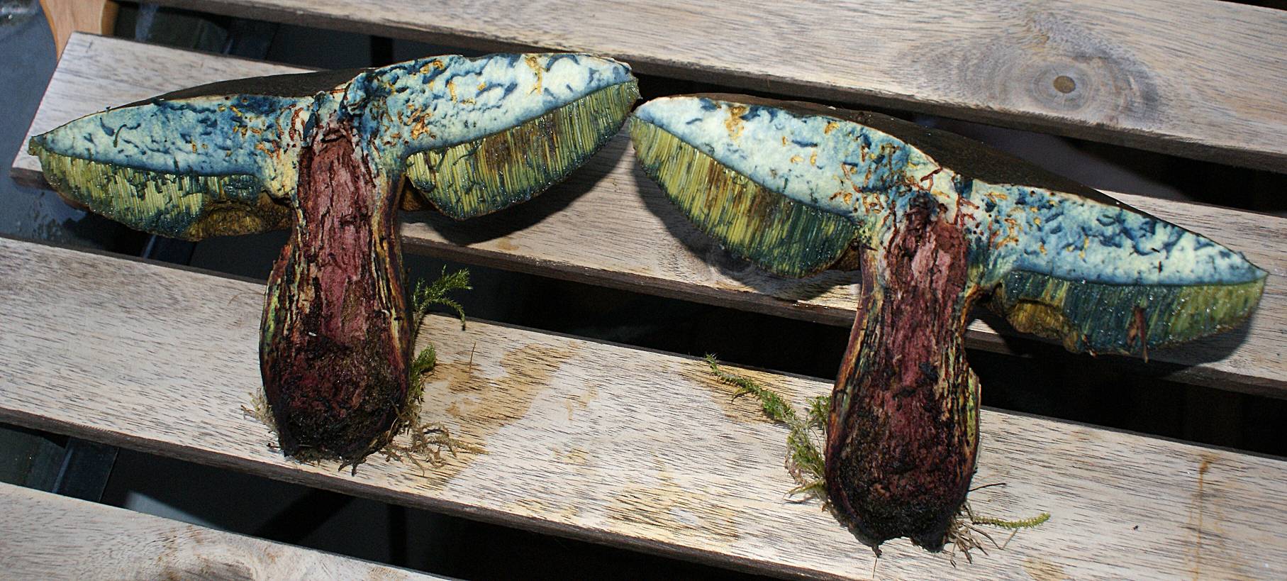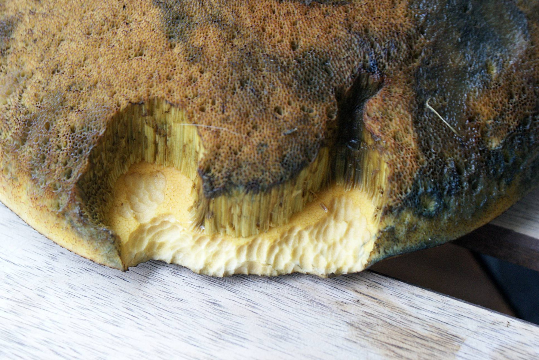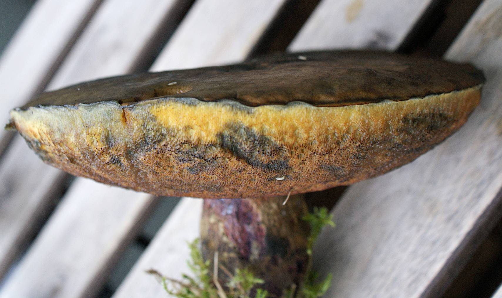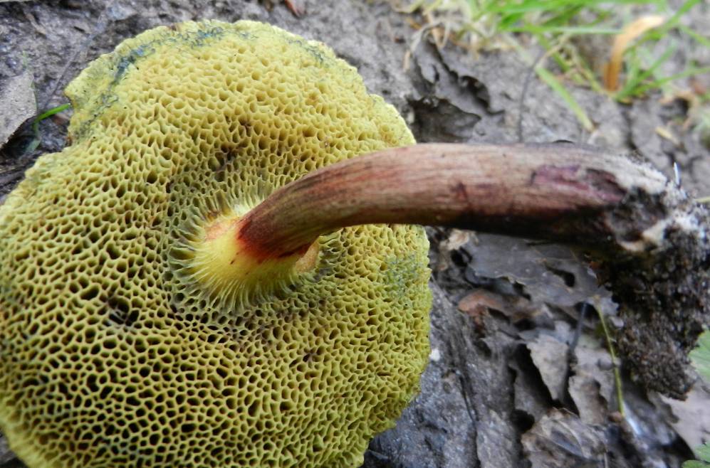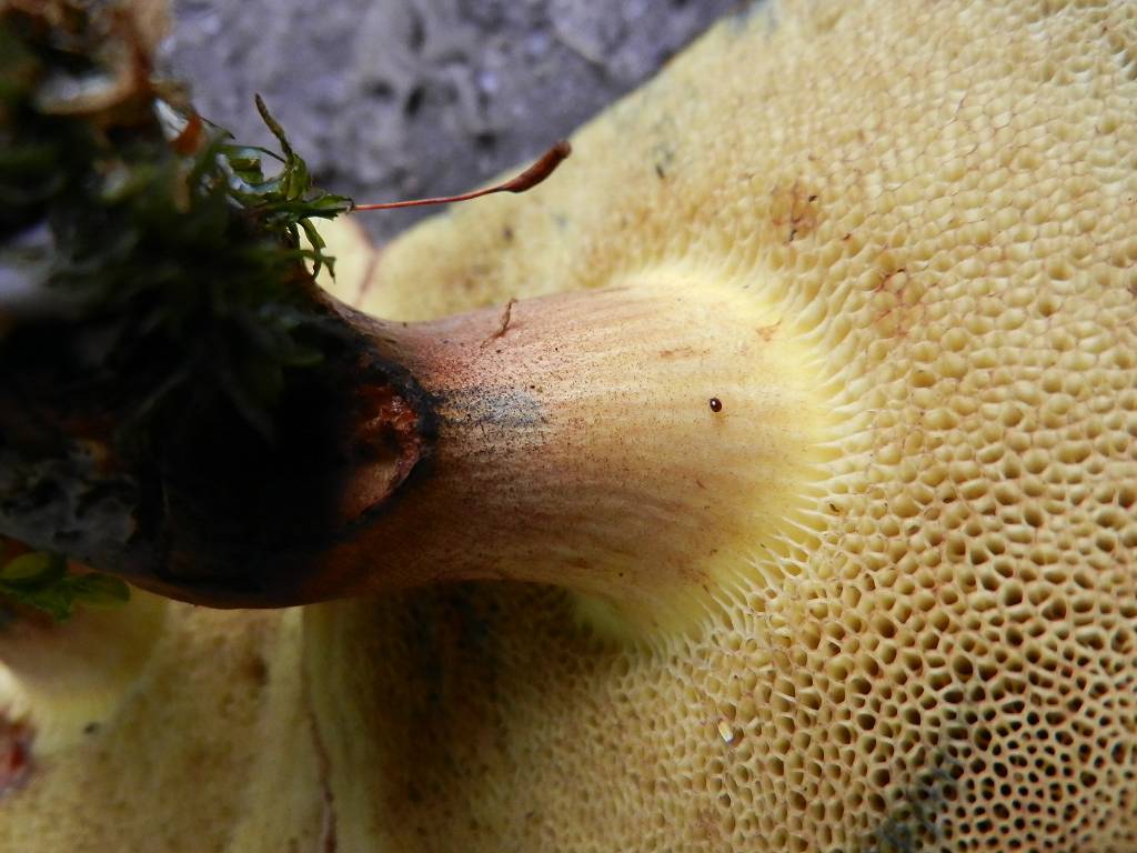 Stiel: Am Röhrenansatz neongelb, dann dunkelbraun-rötlich